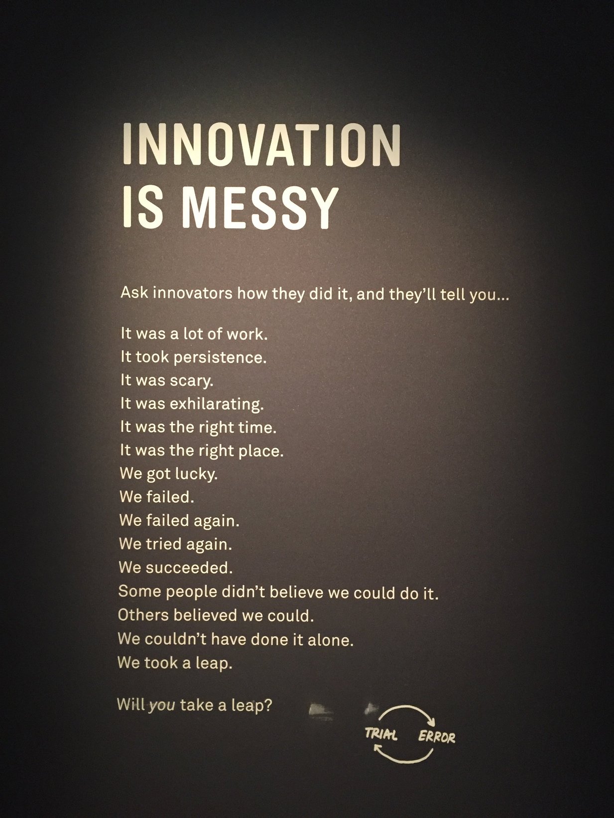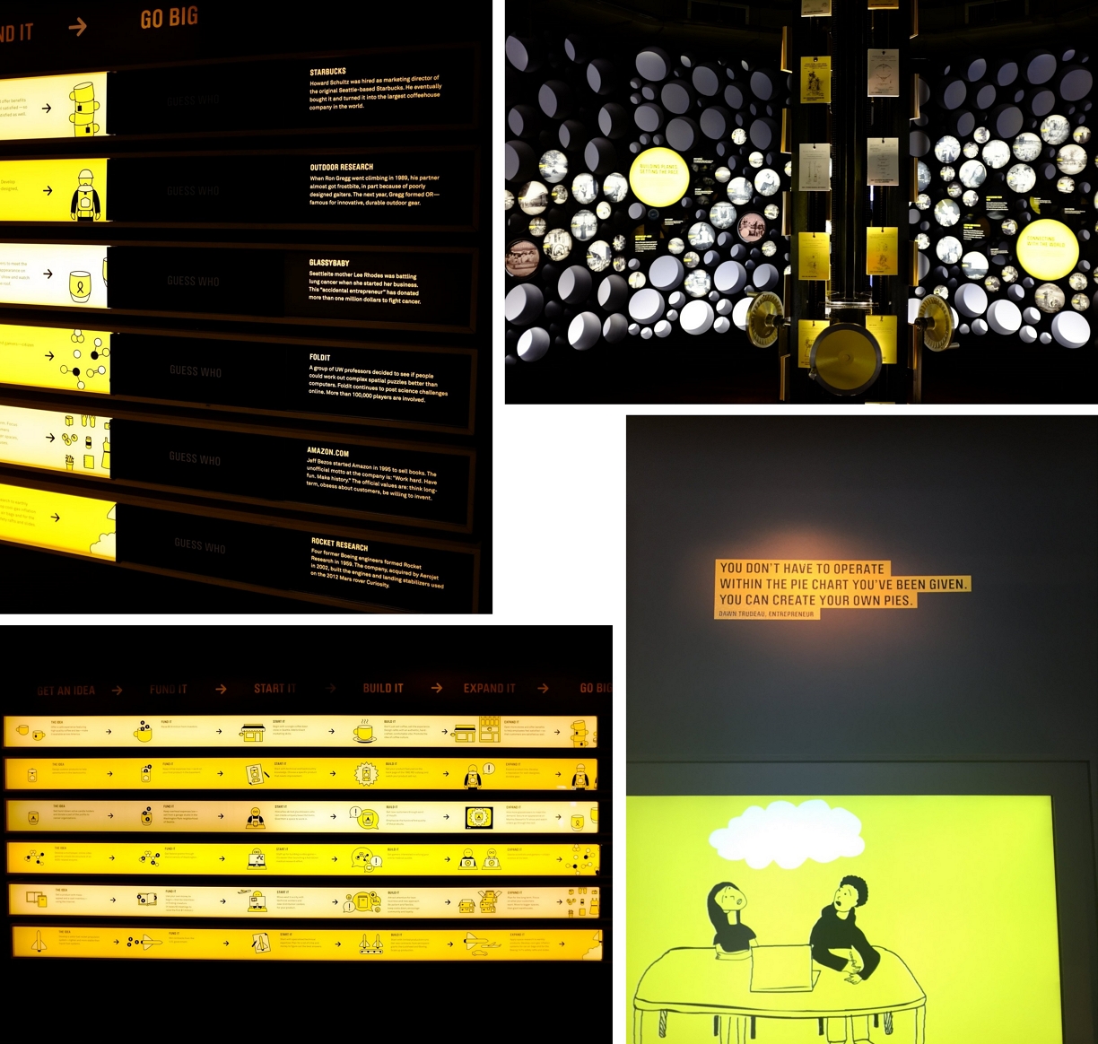 1층에는 정말로 충격적인 전시관이 있다. 우리는 여기서 정말 놀라버렸다.혁신이란 무엇인지, 좋은 아이디어란 무엇인지, 더 나은 판단은 어떻게 내리는지 등을 주제로 삼았다. 이런 건 고급 경영기법에 속하는 사고프로세스에 관한 것인데, 박물관 한 층을 거의 통째로 할당해서 모두에게 '까발리고' 있다.장난하나!? 이런 거 우리는 회사 생활 하면서 연수하고 컨설팅 받으면서 배우는 것인데!!? 애들이 와서 막 참여하고있다.어떤 한 아이디어가 성공에 이르기까지 얼마나 많은 실패와 반복되는 테스트와 인내와 도움과 협력이 필요한지를 '체험'하게 해준다.너네는 도대체 무슨 복이냐.......글로벌 선진 기업들이 어떻게 아이디어를 도출하는지, 그리고 그것이 현재의 삶을 어떻게 더 나은 미래로 바꾸는지......