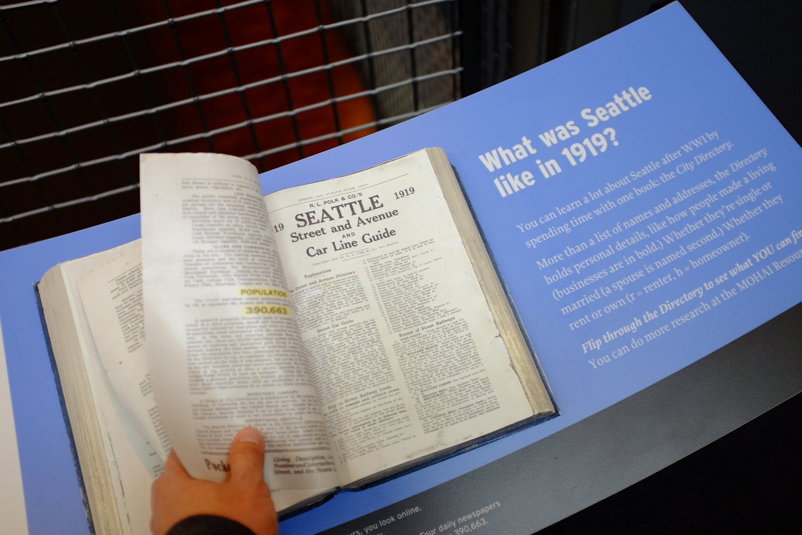 모하이는 시애틀 다운타운 북쪽에 있는 아마존 산업단지 바로 위, 유니온 호수변에 있다. 원래 비행기 공장이었는데, 박물관으로 개조했다. 이곳은 다른 도시였다면 일반적으로 "역사 박물관"이라는 이름이 붙었을 것이다. 그런데 시애틀은 특이하게도 '역사' '산업' 박물관이라고 명명했다. '산업'이라는 단어를 '과학 박물관'에 붙이는 경우는 있어도(ex. 시카고), '역사'에 붙이는 경우는 드물다.시애틀은 서부 개척시대에 "서쪽 끝" 도시로서 의미가 있다. 개척자들이 이곳까지 와서 원주민들과 갈등/경쟁 혹은 협력하며 살아온 이야기들을 박물관 초반부에 잘 설명한다.