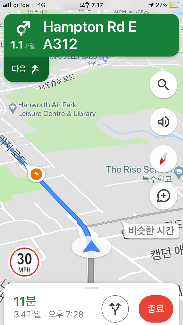 숙소까지 진짜 무슨 정신으로 왔는지 모르겠다. 주위 풍경 하나도 기억 안 남ㅋㅋㅋ 구글 네비 아니었으면 나는 길에서 얼어붙었을 것이다. 그래도 영국이 다들 양보운전을 잘 하는 편이라서 큰 위험은 없었다. 공포의 라운드어바웃을 돌아나갈 때는 - 더구나 수동기어 조작하면서 - 정말이지 내가 왜 이런 짓을 하는 걸까, 근본적인 고민을 잠깐 하기도 했다.