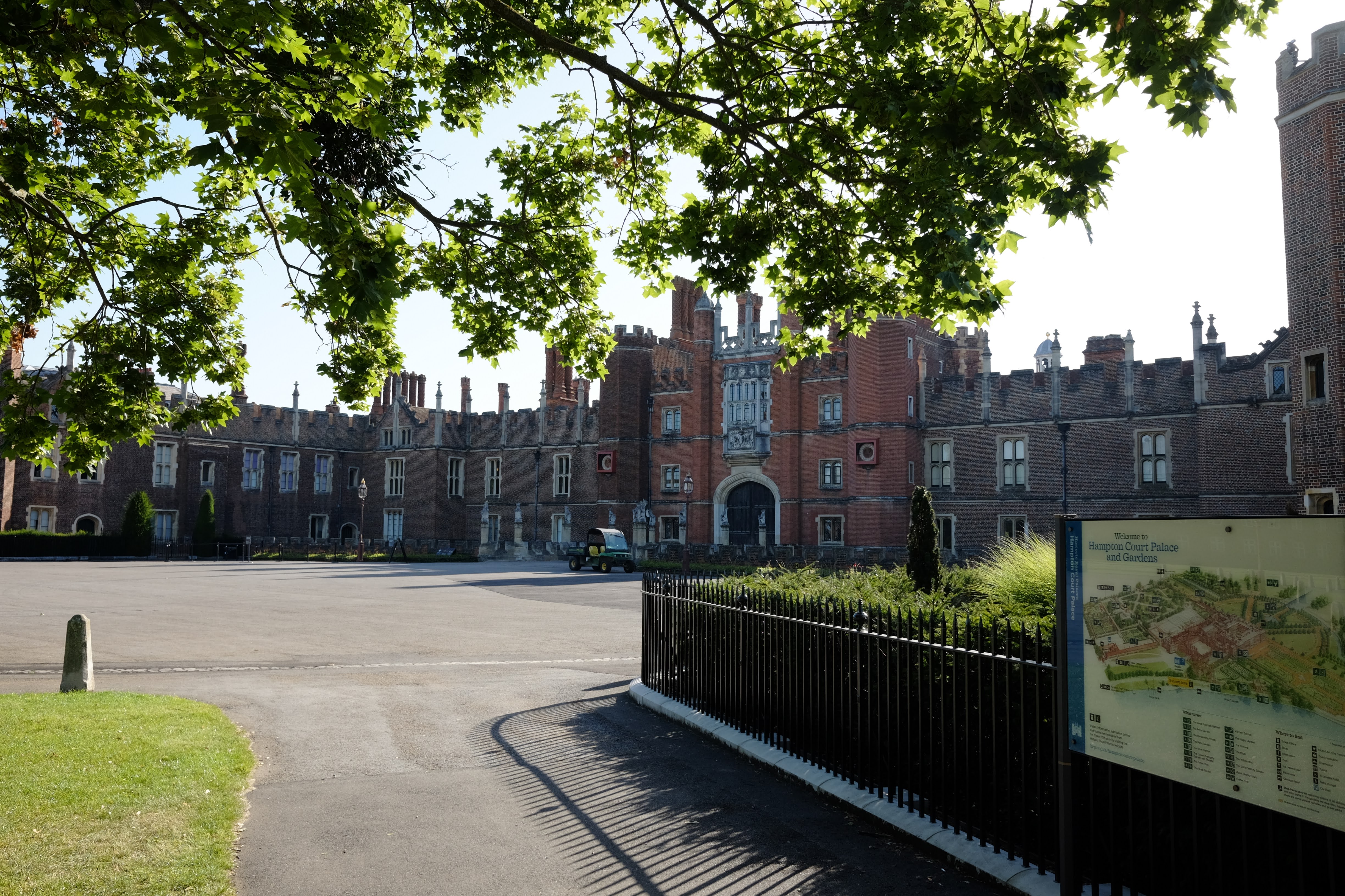 그런데 너무 이른 시각이라 햄프턴 궁전 내부로 들어가는 문은 쪽문까지 다 철저히 잠겨있었다. 개장은 오전 10시부터인데 나는 지금 7시 좀 넘은 상황 ㅋㅋㅋ 애초에 들어갈 생각도 없었지만 대충 멀리서 전경 사진이라도 찍을 수 있겠지 생각했던 것은 완전한 계산 착오였다. 아예 멀리서도 보여주지를 않는다.