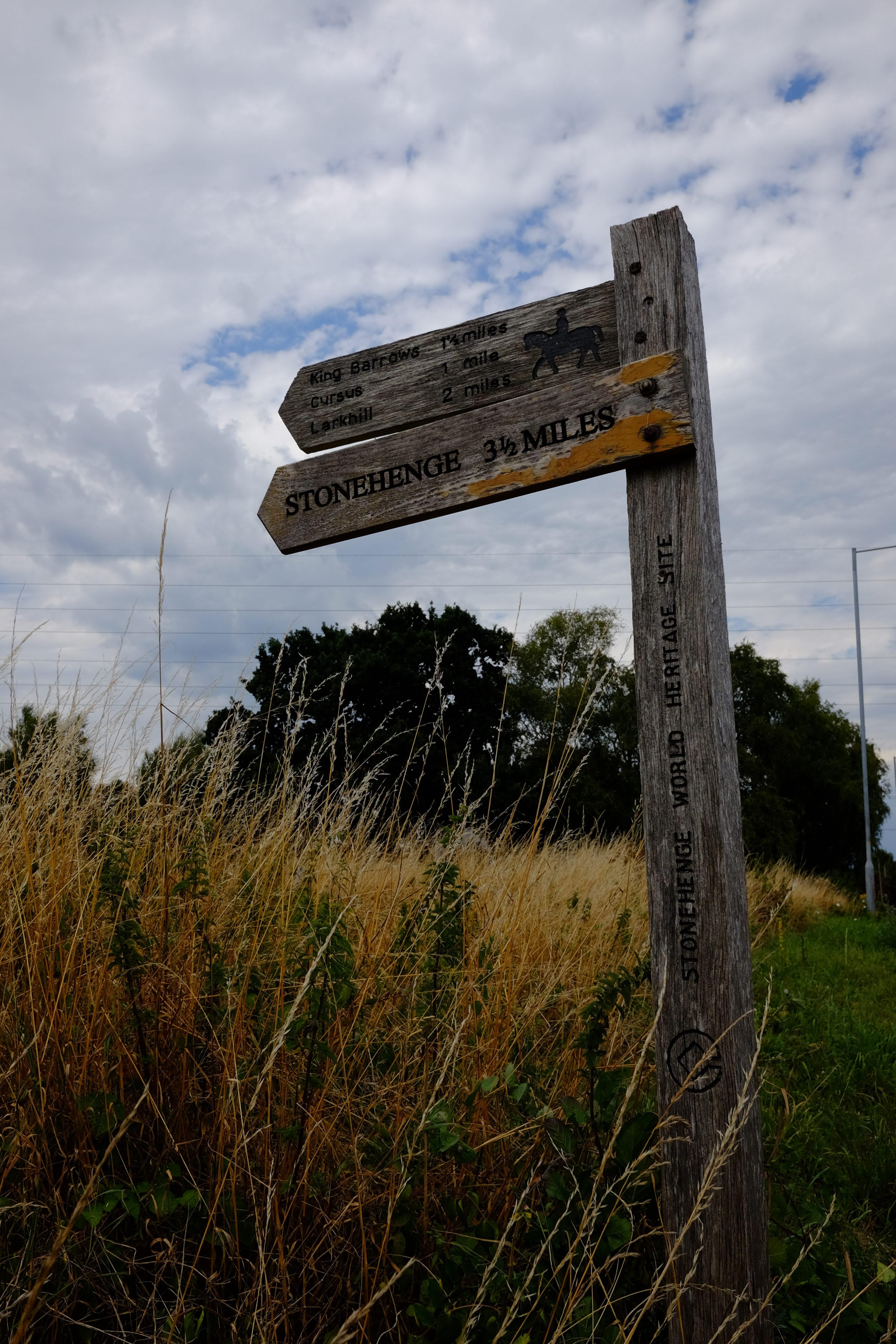 2. 이 지역 뒷쪽에 있는 마을로 접어들어서 조금 걷다 보면, 길 가에 초라한 나무로 만든 오래된 이정표가 보인다. 그리고 거기엔, "스톤헨지 가는 길, 3과 1/2마일"이라는 문구가 적혀있다!