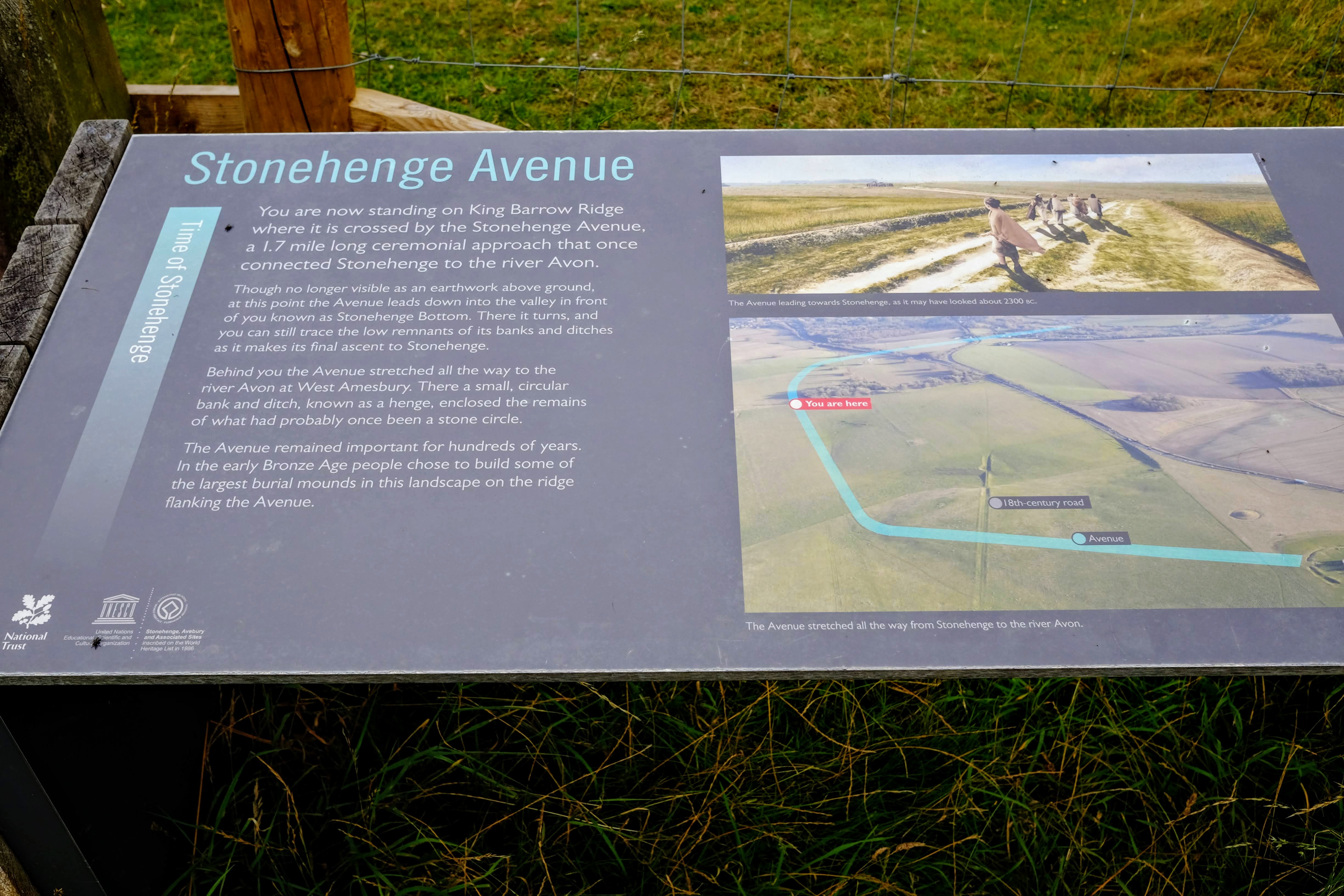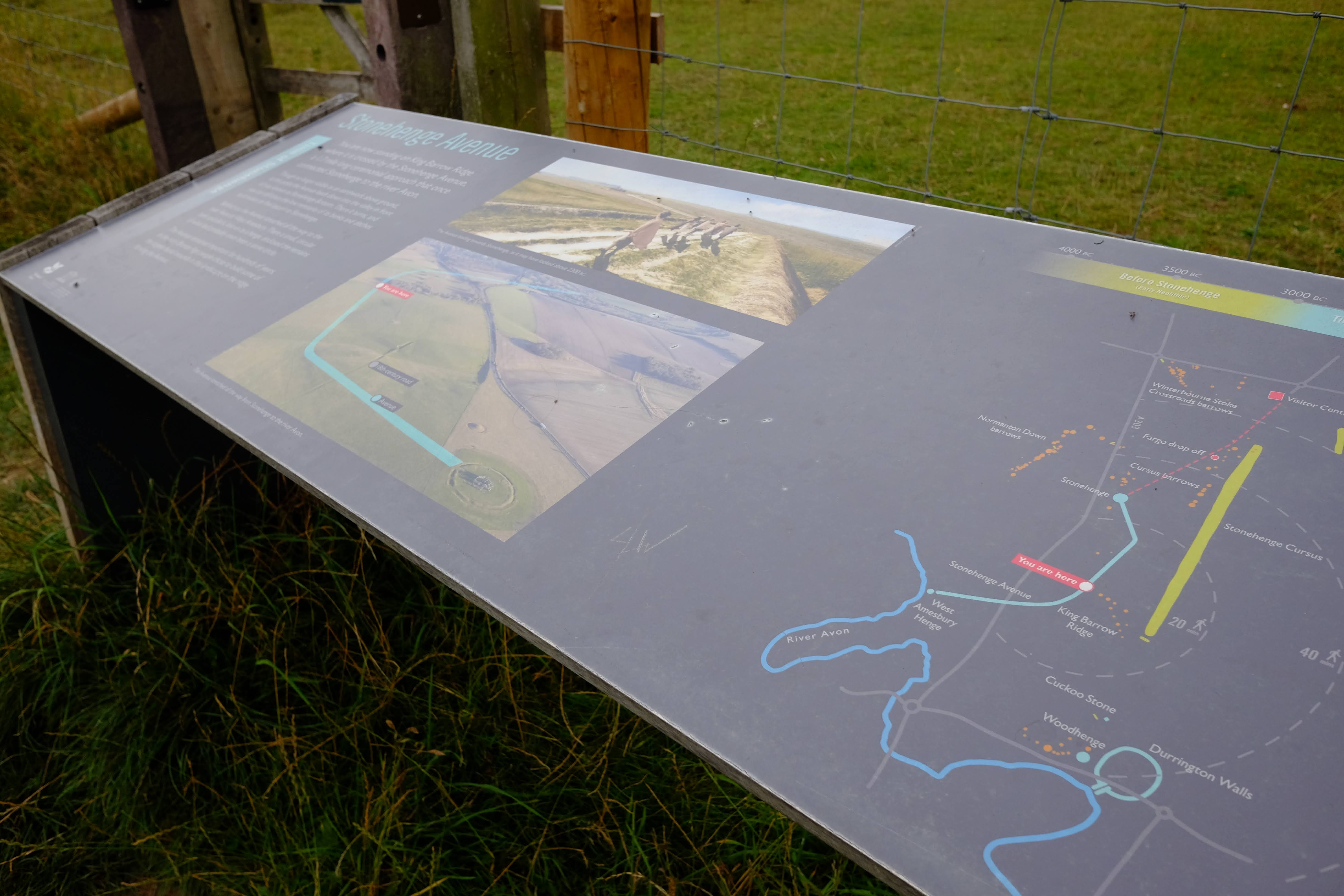 5. 중간쯤 와서 이제 지칠 때 쯤, 저 멀리 스톤헨지가 보일 것이다. 까마득하다. 여기서 포기하지 말고 조금 더 걸으면, 고대 스톤헨지 Avenue에 대해 자세히 설명하는 낡은 안내표지판이 보일 것이다. 자세한 내용은 구글링으로 보충하시자.
