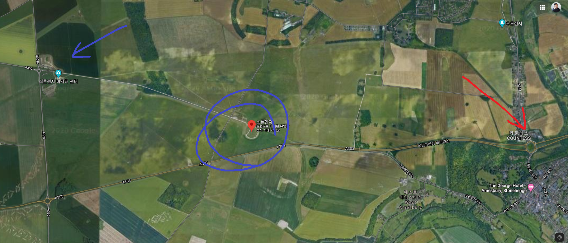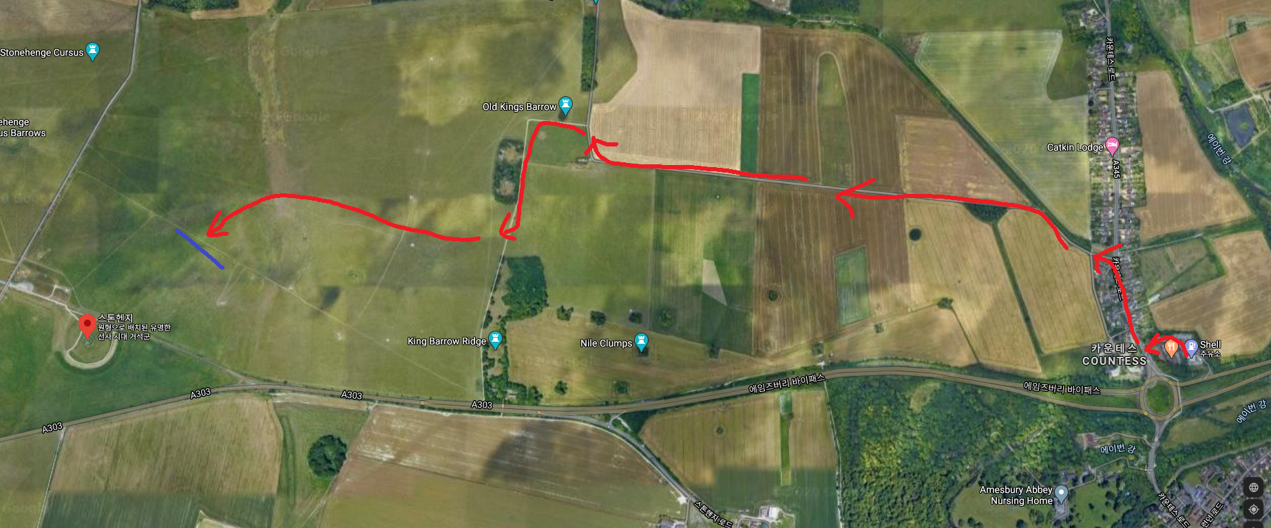 자, 오늘 이야기는 바로 이 고대 Avenue를 따라 스톤헨지까지, 순례자의 마음으로 걸어가보는 코스를 알아보자는 것이다. 완전 무료이며, 합법이다. 다만 두 다리가 고생을 좀 한다!