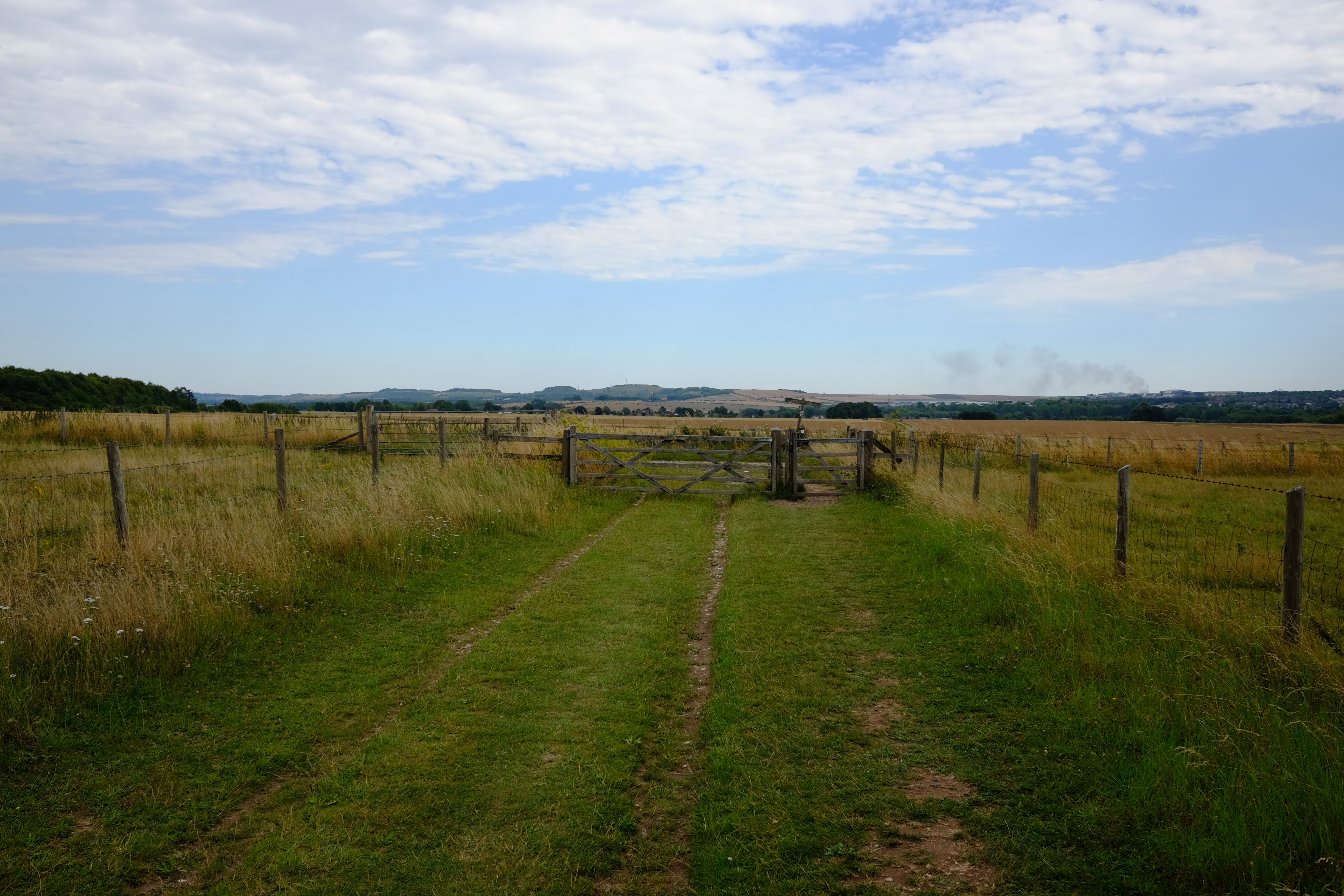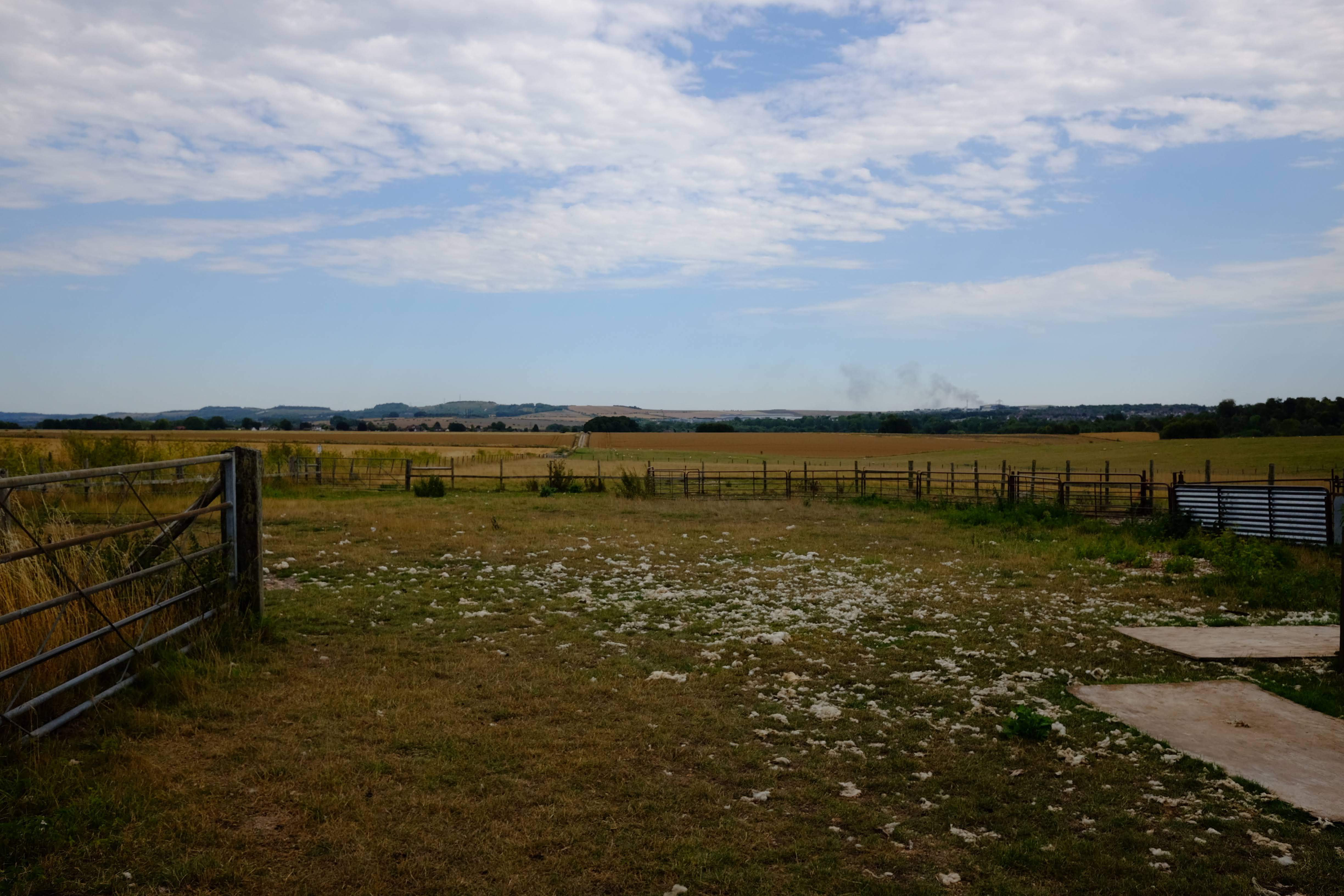 한국에서 구글맵 위성사진으로 코스를 짤 때, 이렇게 목장 지대를 가로질러 가면 보이긴 하겠다 생각은 했는데, 확대를 하면서 다시 생각해보니 여기저기 철조망으로 막혀있어서 실제로는 길이 없을 것처럼 보였다. 그럼 그렇지, 돈 버는 곳에서 허투루 하겠나 싶어서 애초에 포기했던 옵션... 그런데 막상 실제로 예약을 못해서 스톤헨지 비지터센터에서 쫓겨난(?) 상황이 되고 보니, 그리고 마침 저 이정표를 발견하고 보니, 눈에 뵈는 게 없어서 저 길로 들어섰다. 목장길로 비공식 경로로 어디서부터 막힐지도 모르고 제대로 보일지도 불확실한 상황에서 이정표 하나 믿고 걷는 게 아무리 생각해도 불안불안하기는 했지만, 왠지 이런 미친 짓이라도 해야 그날 일정이 덜 섭섭할 거 같아서 걷고 또 걸었다. 결과적으로 이 포스팅을 올릴 수 있는 뜻밖의 소득을 얻었다.