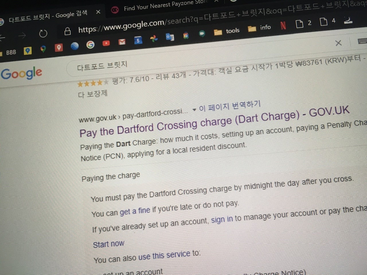 여튼 결론은, 영국에서 운전할 때는 유료도로를 주의하자는 것. 구글맵 경로안내시 유로도로가 뜨거든, 그날 자정이 되기 전까지 내가 어딜 지나왔는지를 꼭 기억했다가, 구글에서 결제 페이지를 검색하고 들어가서 반드시 결제하자 ㅋㅋㅋ. 혹시 카드가 안 되걸랑, Payzone이라는 명패가 붙은 가까운 동네 담뱃가게나 구둣방 같은 구멍가게를 찾아가자. 문 여는 시간이 집집마다 다르다는 것은 함정.