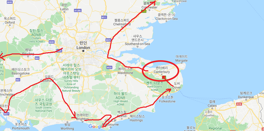 브리튼 섬 남해안 일주(?)를 마치고 이제 이스트앵글리아 지역으로 이동한다. 앞의 글(https://joyance.tistory.com/366)에서 소개한 그 다리를 건너서 얼마동안 고속도로를 달리다가, 아름다운 시골길로