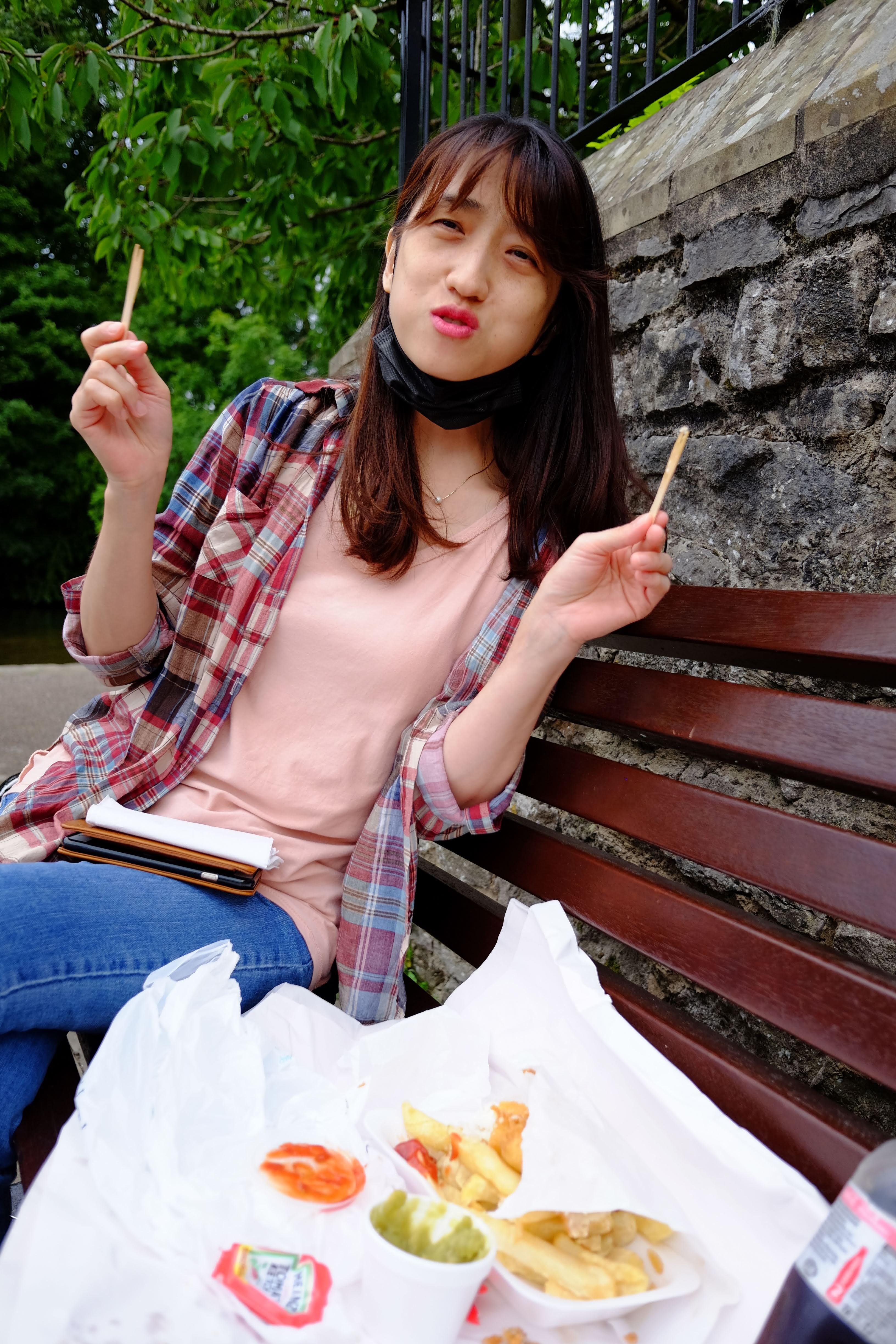 저녁거리로 피쉬앤칩스를 사서 돌아오는데 주차장 시간이 1시간이나 남았길래 강가에 벤치를 하나 차지하고 거기서 피쉬앤칩스를 먹었다. 그 순간이 너무 행복했다. 이렇게나 만족스러운 여행이라니~