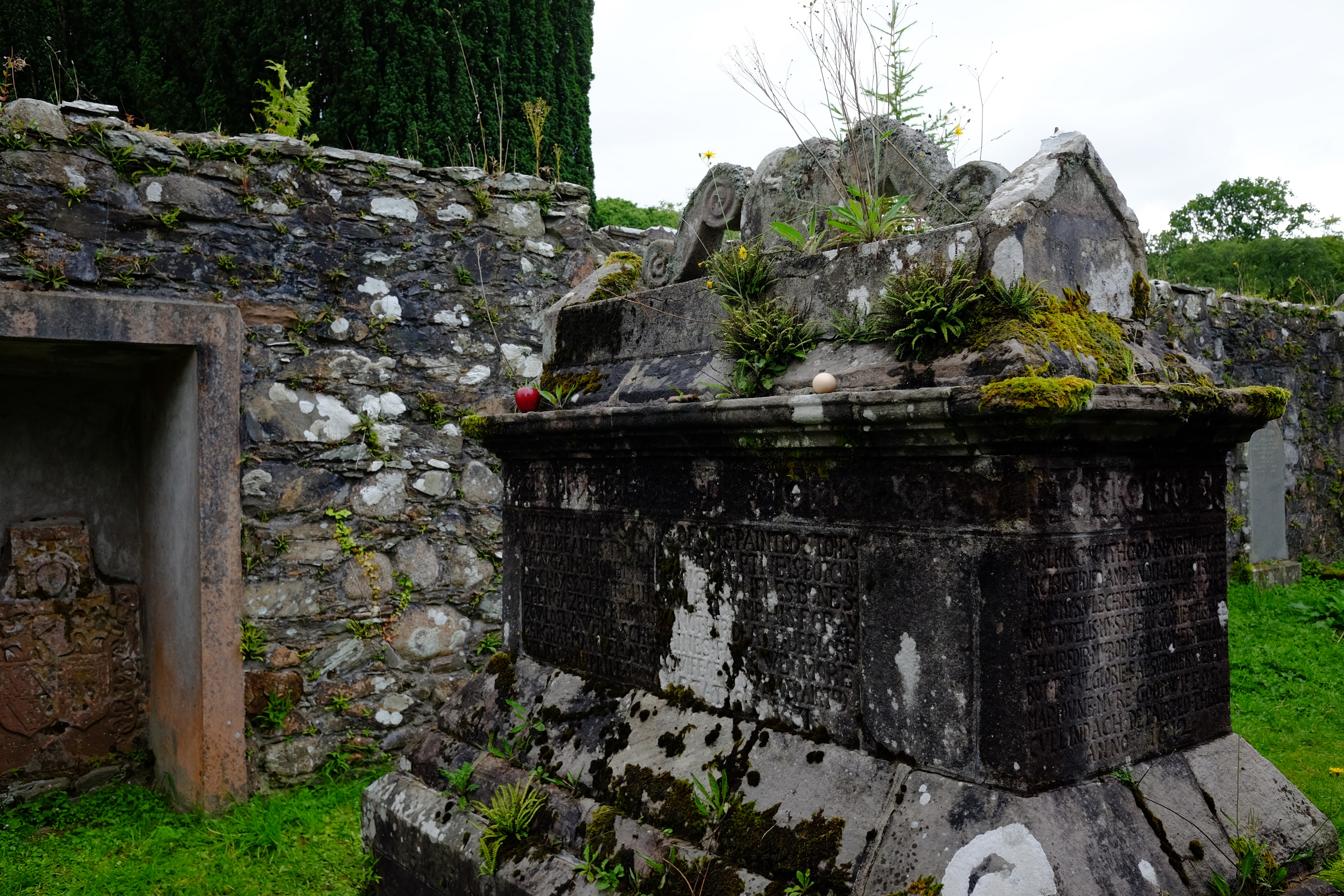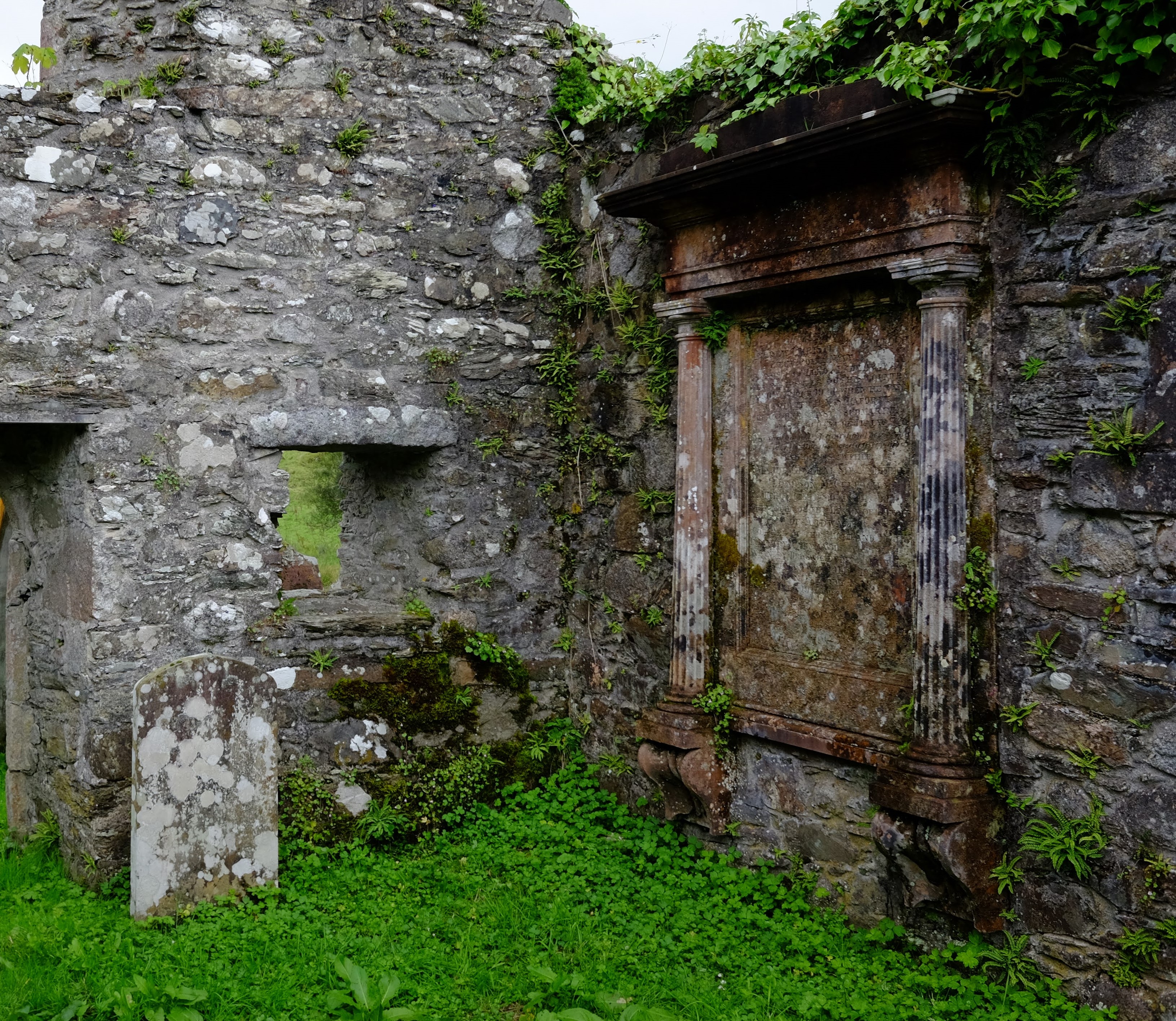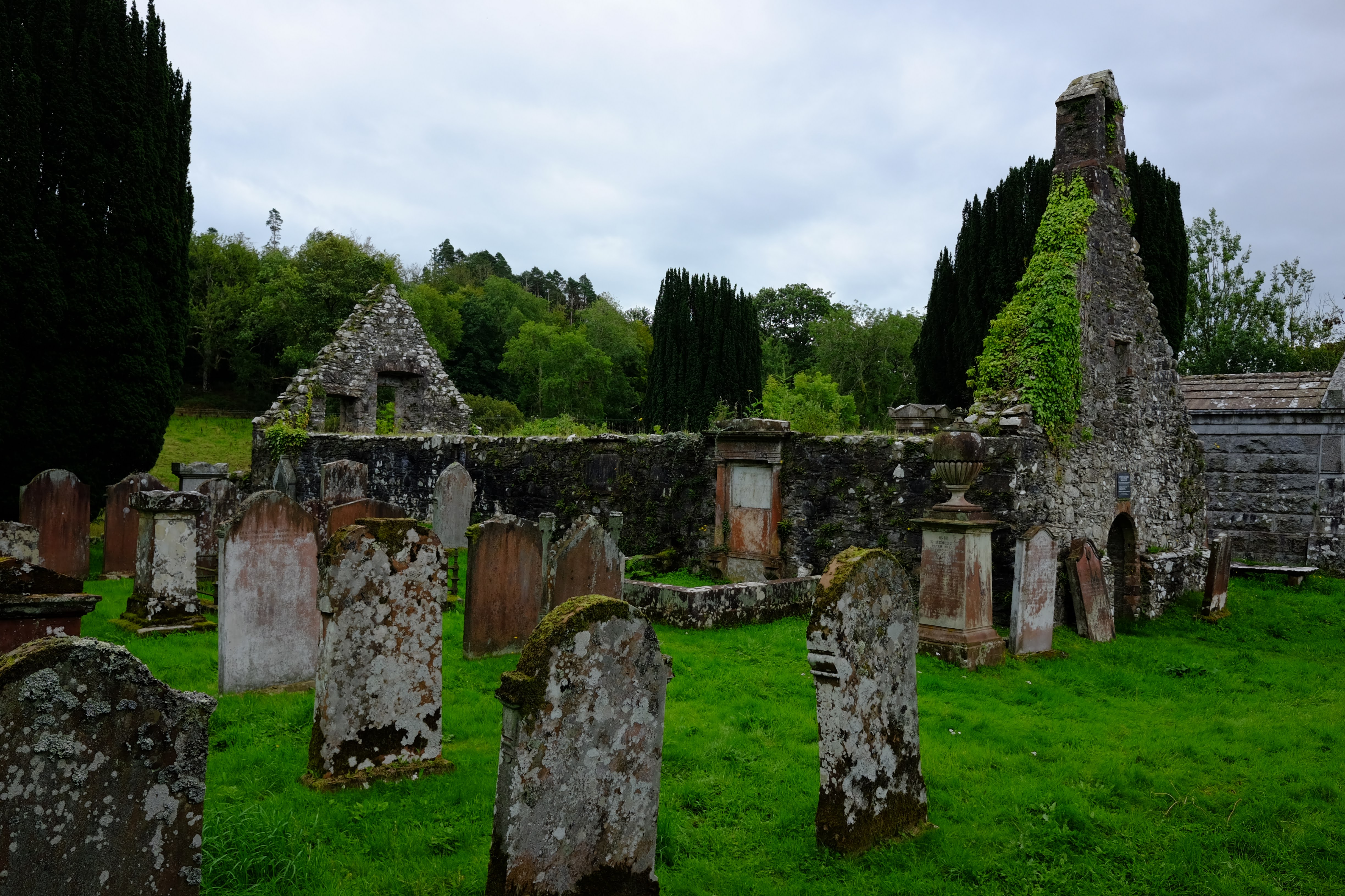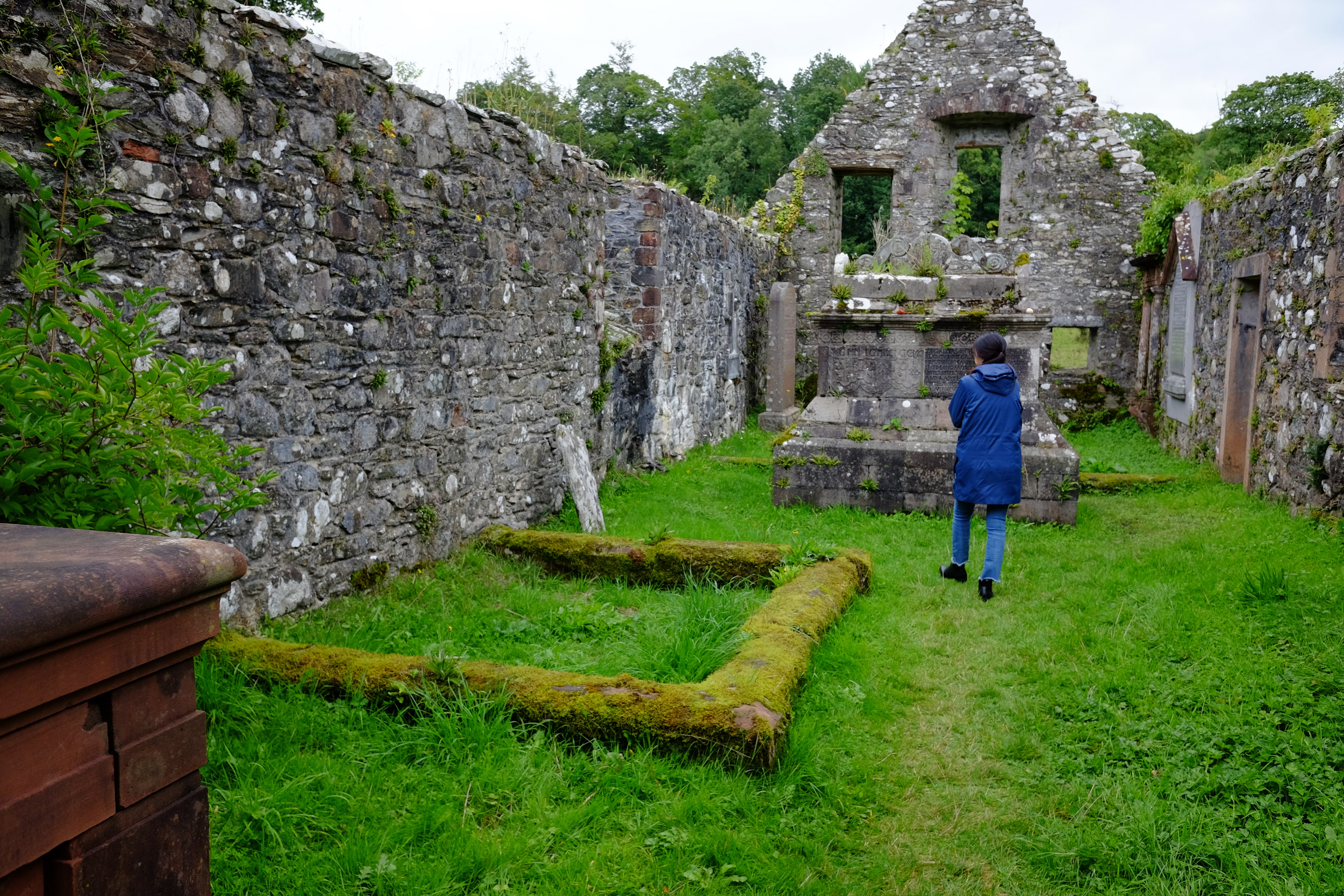 내부는 완전 폐허가 되어 있었다. 신성한 곳이란 인식 때문인지 후대에 누군가가 여기에 무덤을 쓰거나 기념비를 두어서 내부가 복잡해 보이지만 원래는 교구민이 모여서 말씀을 듣고 성찬을 나누던 깨끗한 장소였을 것이다. 가만 보니 나중에 영화를 찍는다고 기존 무덤을 옮겨놓기까지 한 것으로 보인다.