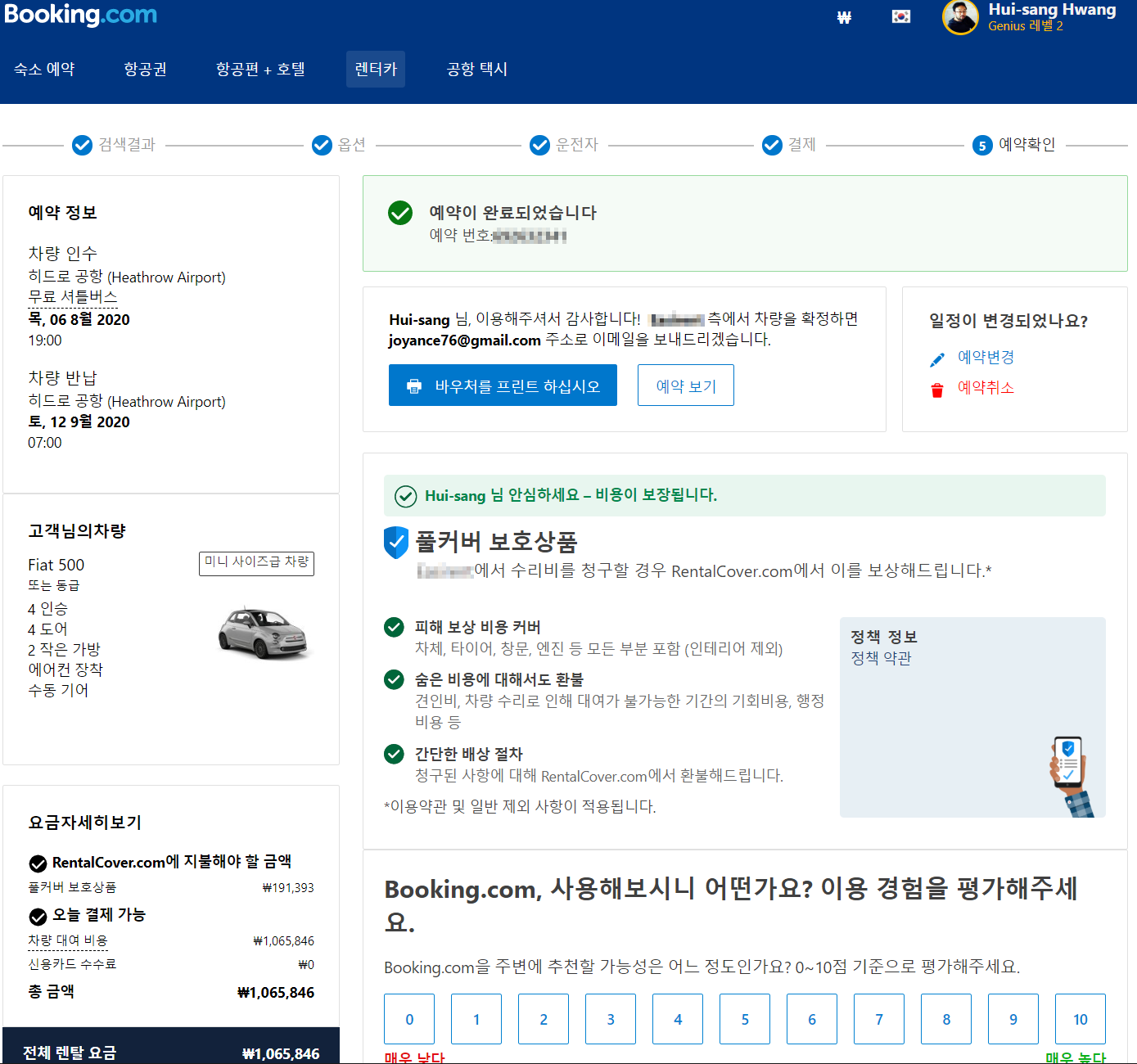 2. 금액은 8월 6일부터 9월 12일까지 무려 38일을 빌리는데 106만원. 풀커버 보험료 19만원 넣어서 125만원 썼다. 수동기어라 저렴했고, 일부러 물량이 많은 히드로공항 인근 저가형 렌터카 업체에서 빌려서 더 저렴했다. 다른 공항으로 가면 대부분 2~30% 오른다. 물론 이것도 큰 돈이지만, 만약 38일간 전국일주를 하면서 기차나 버스, 우버 등을 매번 이용했다면 치명적인 지출이 있었을 것.