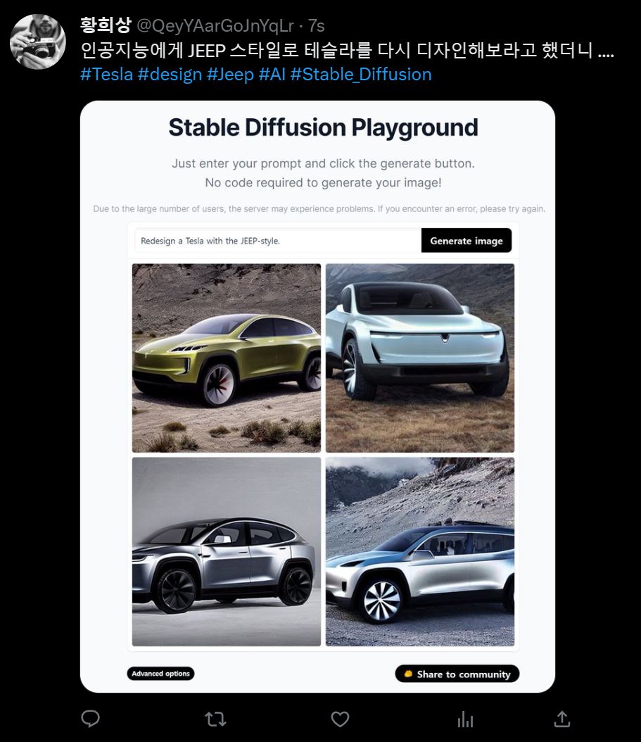 3. JEEP 스타일의 테슬라 차세대 모델을 상상해줘.