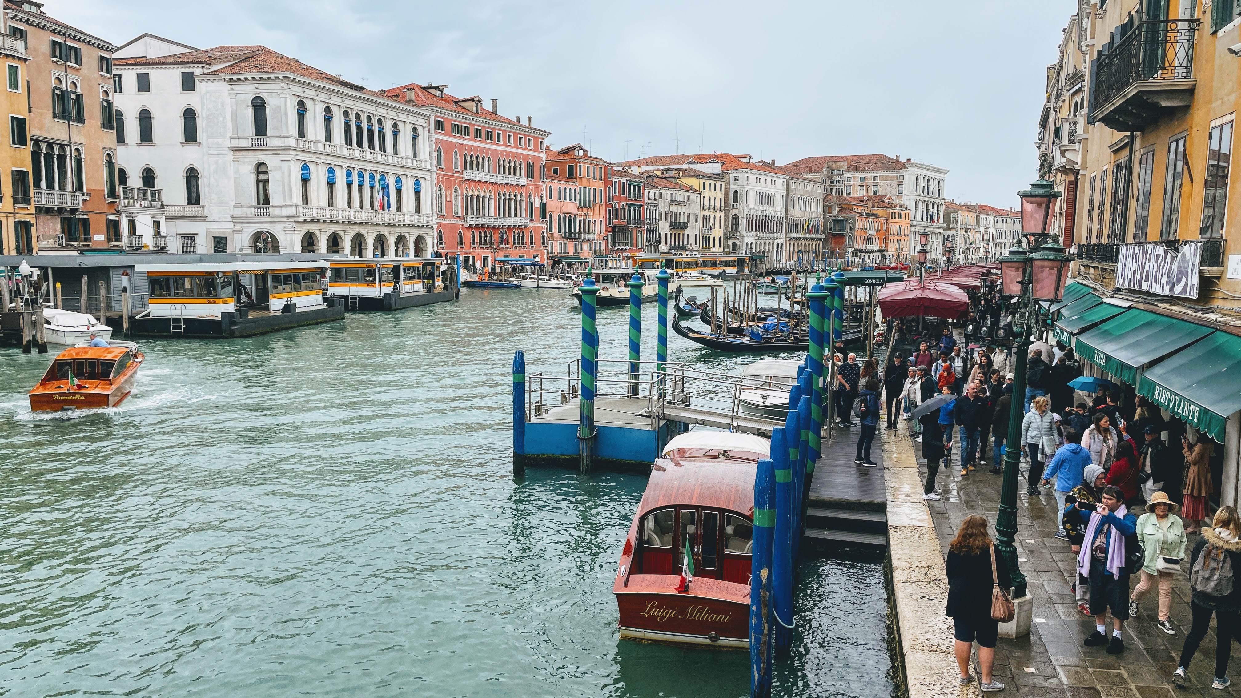베네치아를 S자 곡선으로 관통(?)하는 대 운하. 작은 골목길도 예쁘지만 사람이 많으면 답답했는데, 대운하 주위는 사람이 바글바글해도 공간감이 있어서 어디든 좋았다.