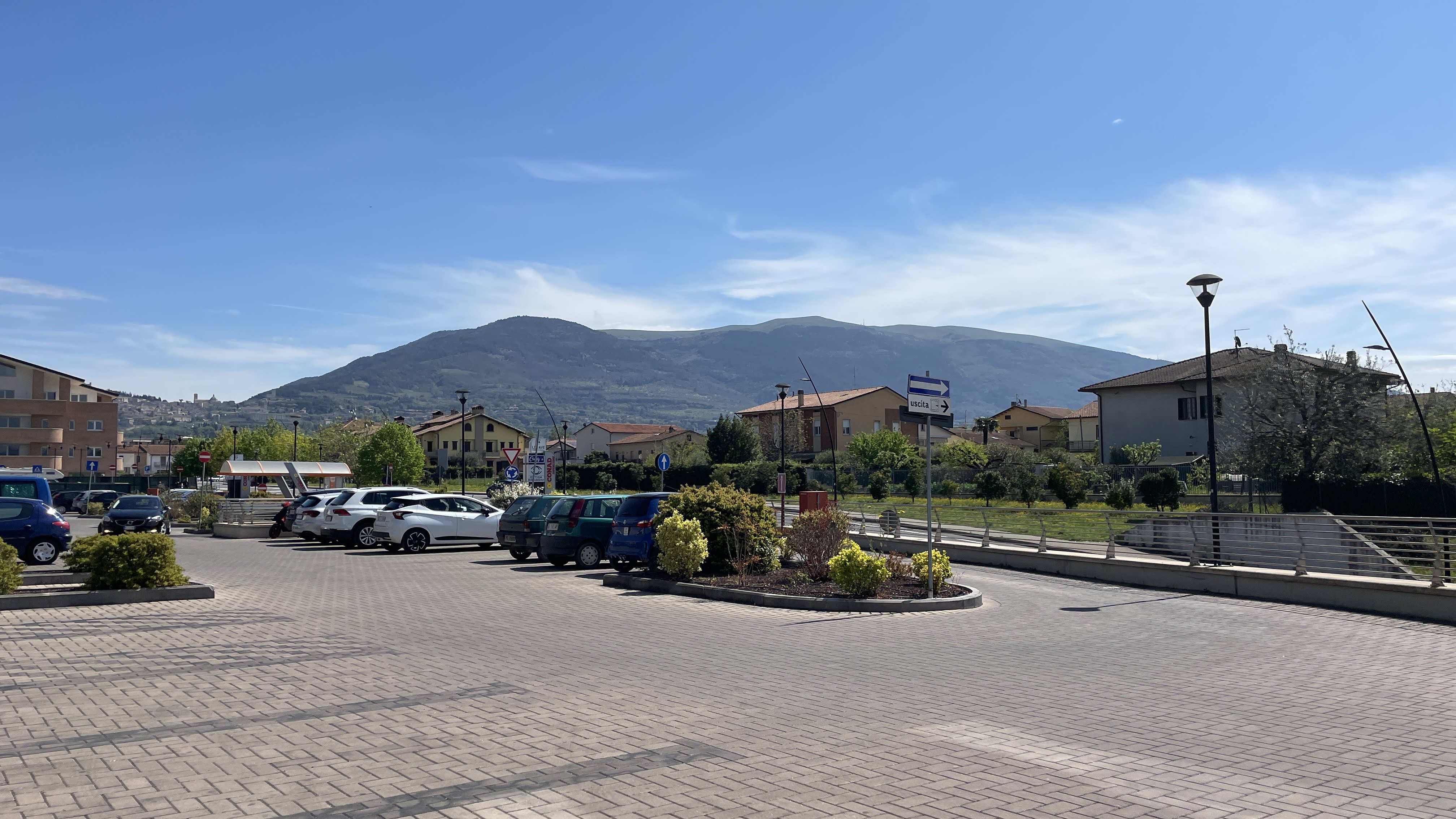 이곳은 앞의 글에서 소개한 그 아씨시 옆동네 쇼핑타운이다. 주차장에서 아씨시 쪽을 보면 무등산처럼 생긴 산이 보인다. 이 산은 몬테 수바시오라고 하는데, 아씨시는 바로 이 산의 서쪽 끝자락에 형성된 도시였다. 그래서 수바시오 산은 소위 '영산'으로 불린다. 우리나라에도 뭔가 이유는 모르지만 옛부터 영험한 기운이 있는 산을 따로 정해놓고 그렇게 믿는 경우가 있는데 이탈리아도 그런 듯하다. 계룡산 같은... ㅋㅋㅋ