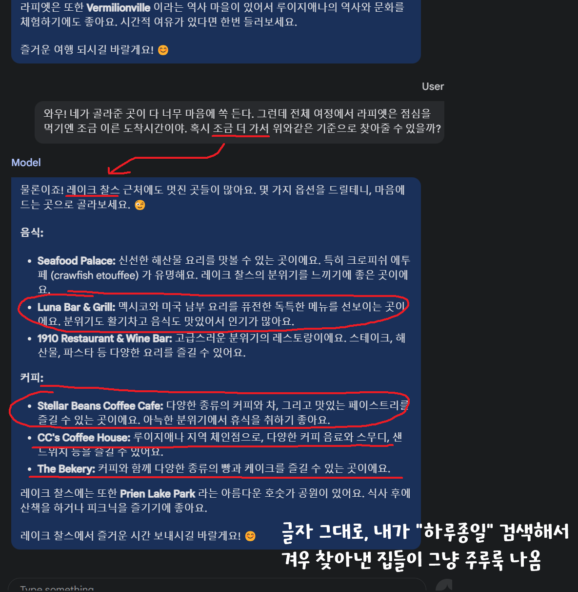 그동안 현실 세계에 대해서 어벙하던 다른 Ai들과는 차원이 다른 완벽한 답변.