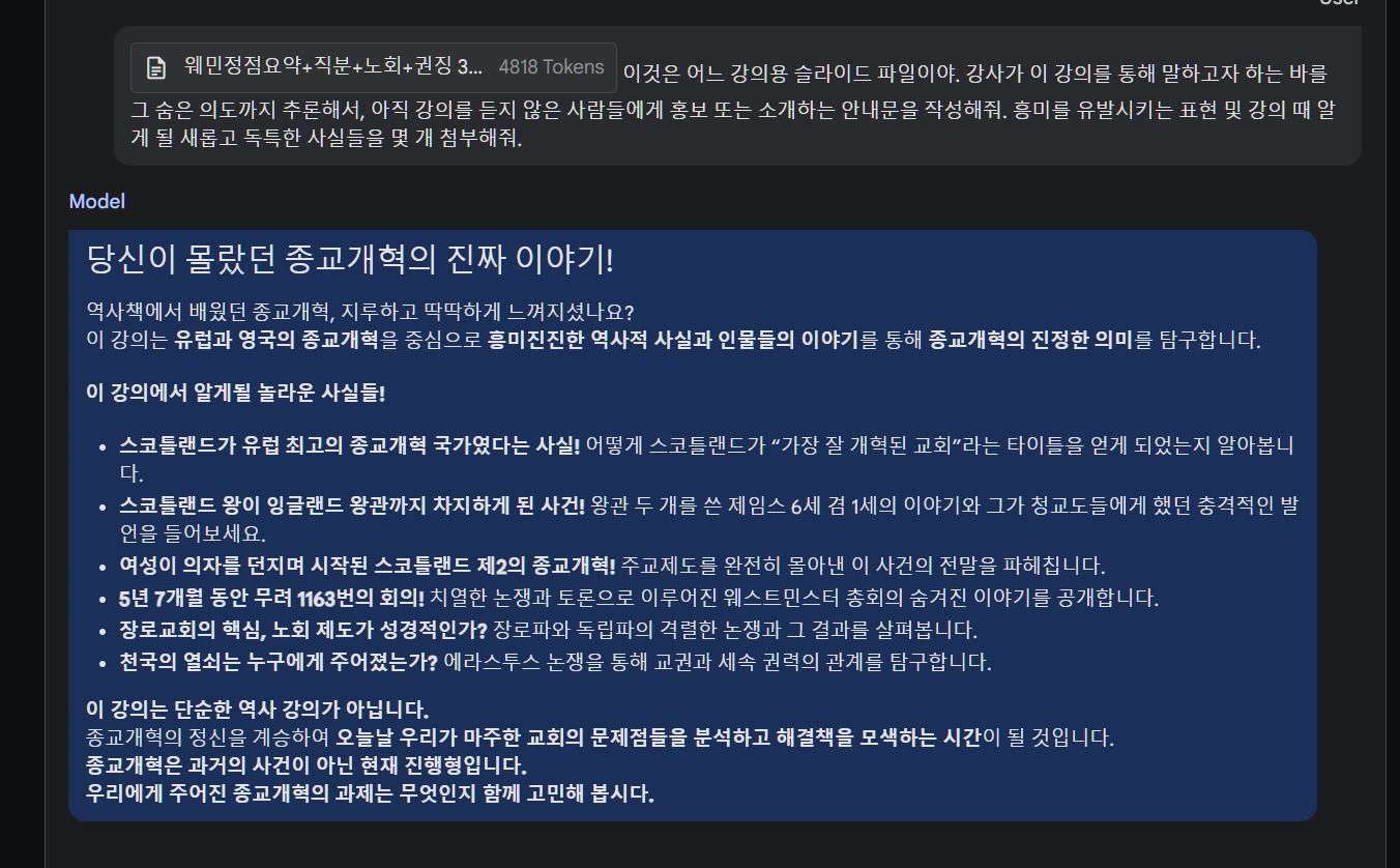 내 강의용 PPT도 통째로 던져넣고 홍보문구 작성 시켰더니 내 강의를 열 번쯤 들은 사람처럼 작성해준다.