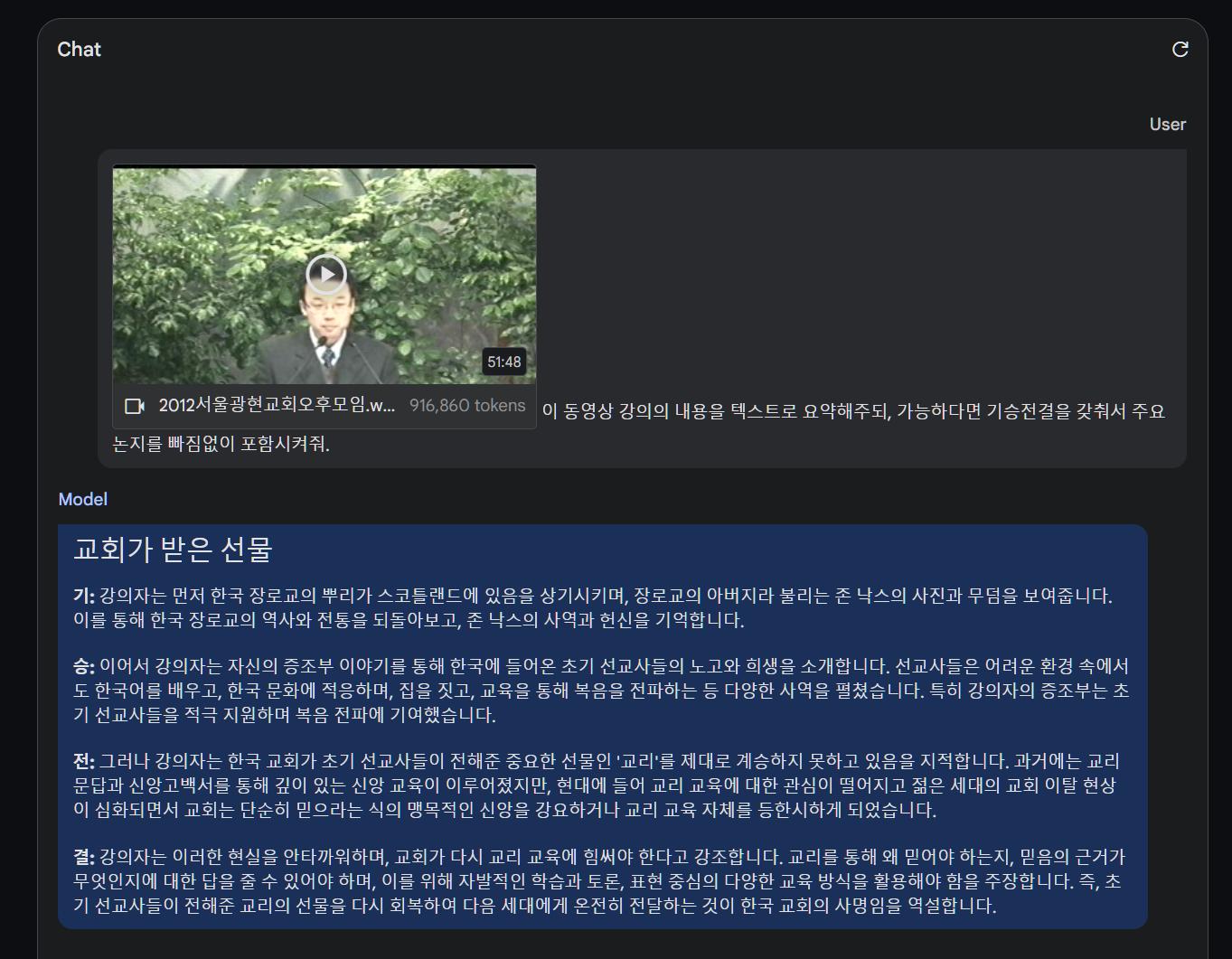 물론 1시간짜리 강의 영상 자체를 올려도, 30초만에 영상을 다 보고(?) 원하는 결과물을 내준다.