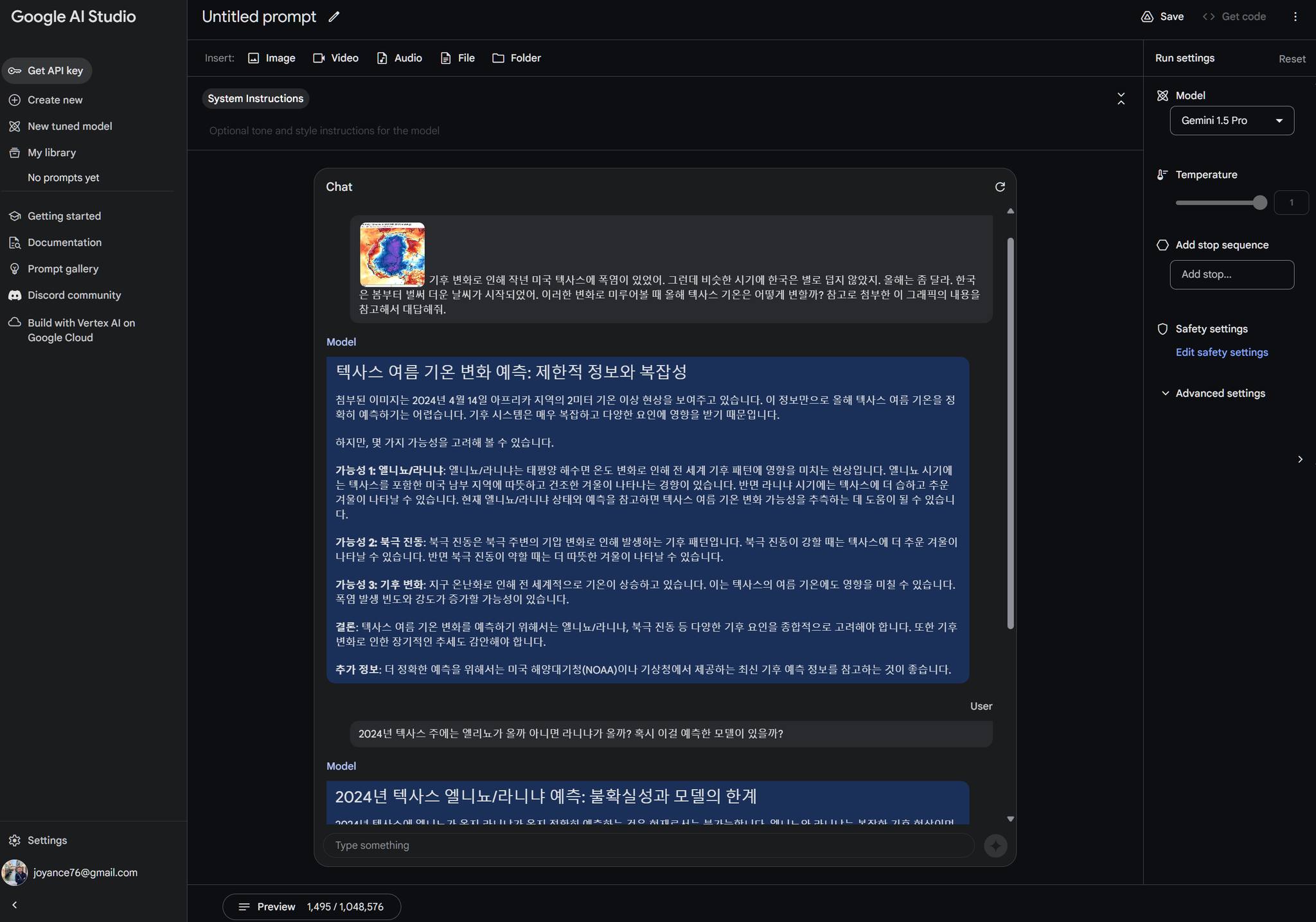 대략 정신이 아득하다. 이번에 퍼블릭 프리뷰로 풀린 구글 제미니 1.5 pro 버전을 써보고 있다. 기존 제미니와는 '쩜오' 차이인데, 사용자 경험은 천지차이가 난다. 테스트 중에 여러 차례 현타가 와서 힘들었다.......