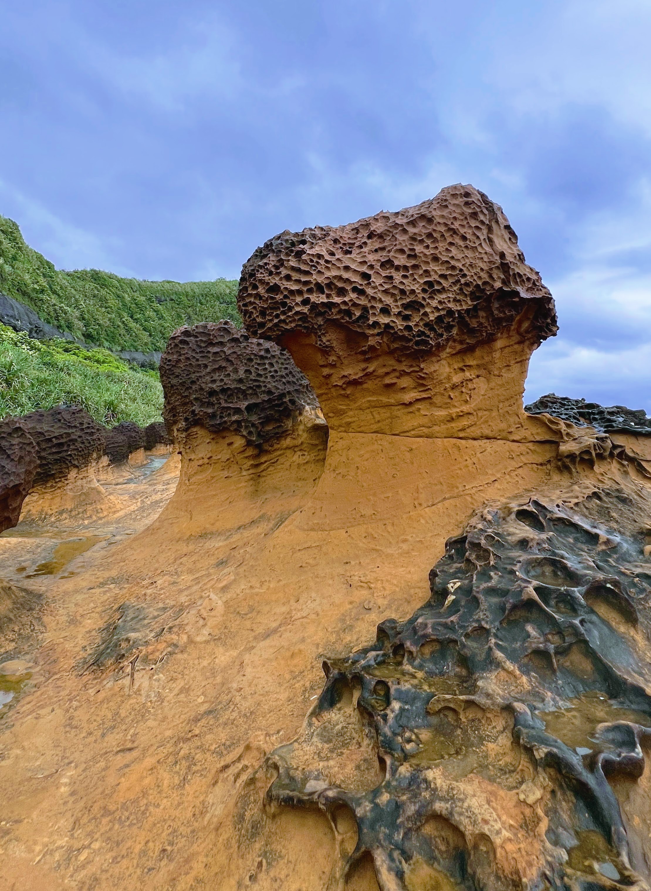 버스투어 상품명이 예스진지 투어라고 해서 뭔가 했더니, 그냥 타이베이 근교의 대표적인 관광지인 예류, 스펀, 진과스, 지우펀... 이 네 곳의 지명(野柳, 十分, 金瓜石, 九份) 첫글자를 따서 '예스진지'라고 부른다. ㅎㅎㅎ 시내에서 모여서 버스를 타고 함께 이동하며 이곳을 하루에 둘러본다. 짧은 일정에 타이베이 시내만 보긴 아까운 사람들은 이렇게 하루를 쓰면 뭐 괜춘하다.
