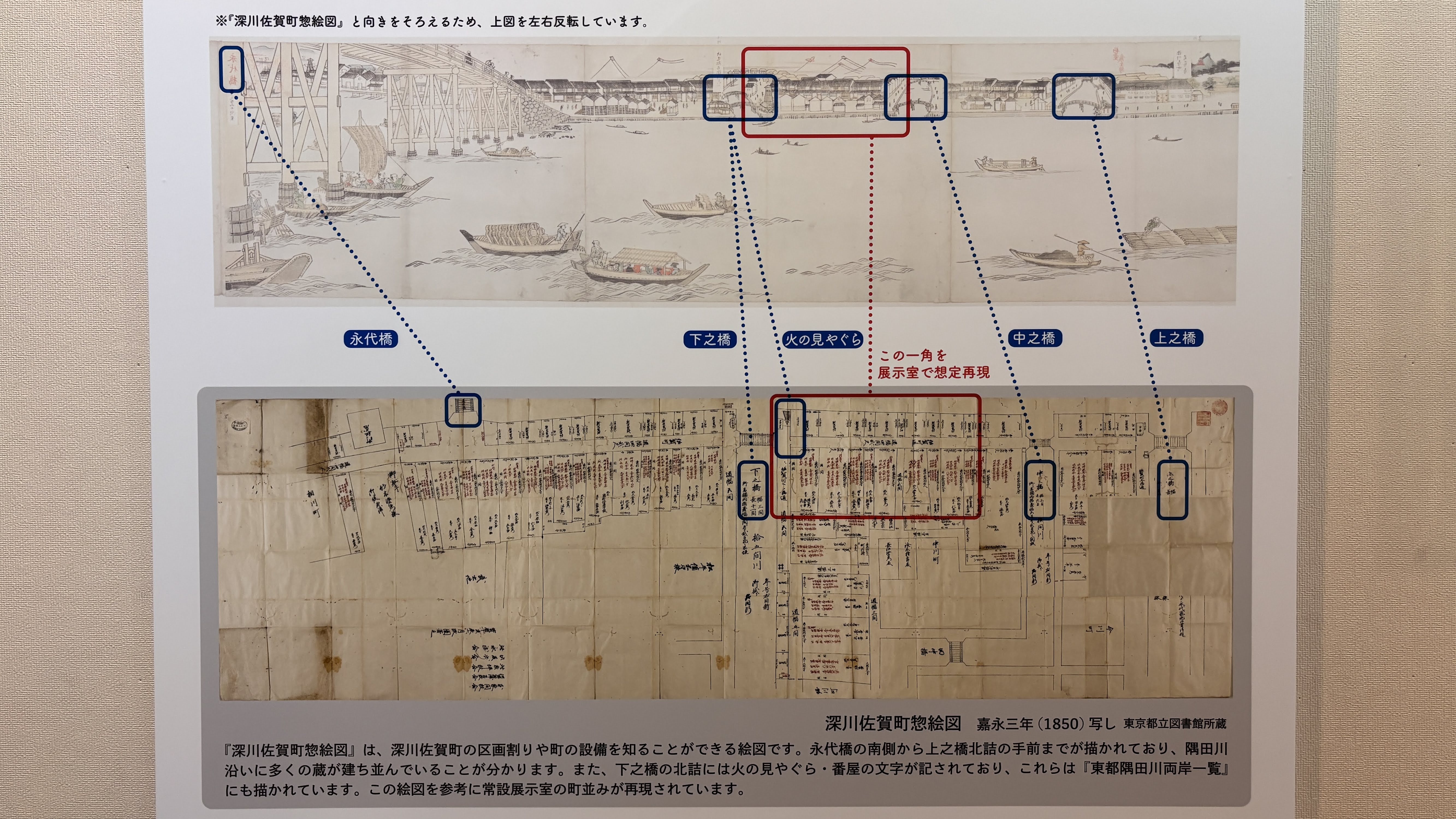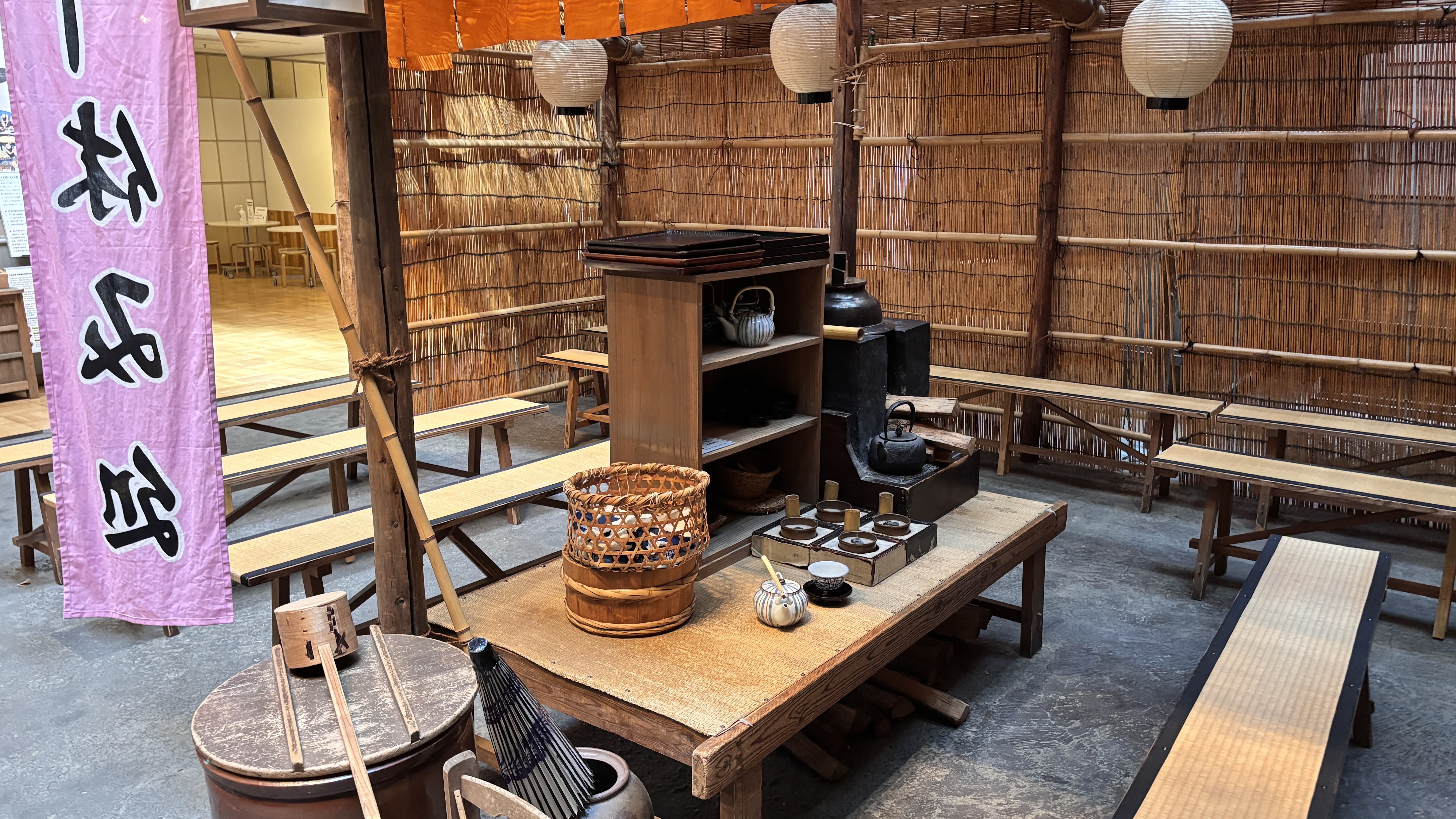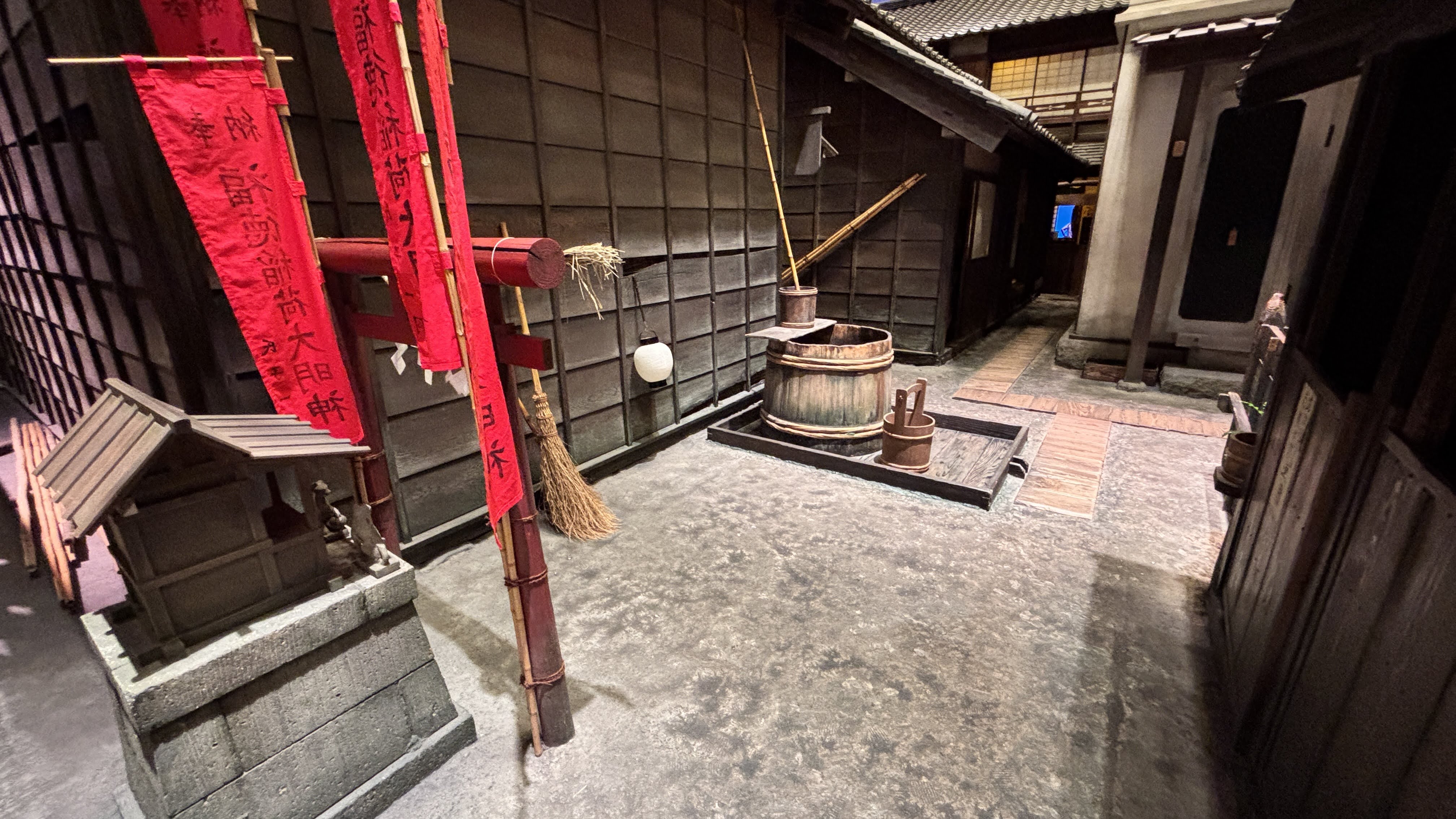 이 박물관이 나름 고증을 거쳐서 전시물을 기획/제작한 것이라 신뢰가 갔다.일본의 명절들 및 그에 맞는 풍속들을 만화로 알기 쉽게 전달: 11, 33, 55, 77, 99, 1111일이 주요 명절이다.감탄이 나오는 그림이다. 과거의 모습을 상상할 수 있도록 한 그림. 석양이 강물에 반사되는 것을 독특하게 표현했다. 나중에 알고보니 이 화가의 작품 스타일이 유럽 인상주의에 영향을 주었다고 한다. #자포니즘이렇게 박물관 직원(학예사? 자봉단?)이 서포트 해주는 것이 정말 좋았다. 이 사진은 생쥐를 함께 찾아보자며 플래시를 비치는 중인데, 다음 순간 생쥐는 천장 밑 시렁 위에서 등장한다. ㅎㅎㅎ 아이들이 뜻밖의 발견에 너무너무 좋아했다.사진만 보면 그저 그런데, 이 마을에서 들릴법한 소리들이 사운드 효과로 주어져서 정말 실감이 난다.