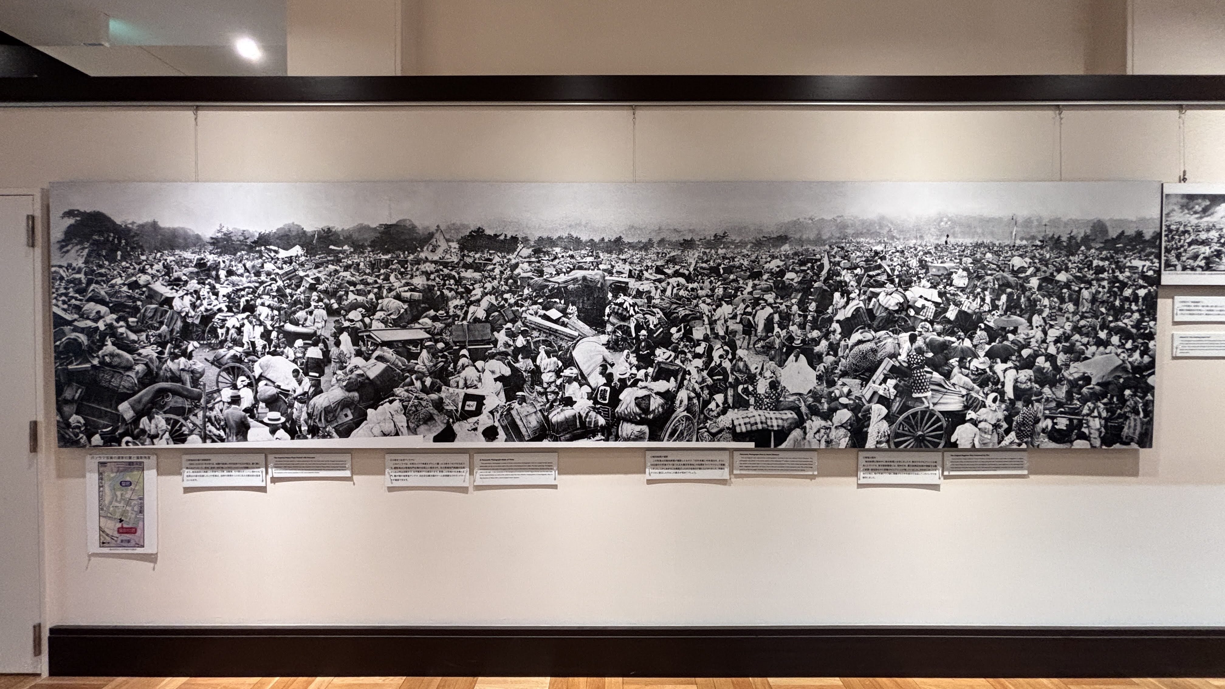한편으로는 대지진 이후 도시를 복구하는 과정이 자세히 소개되어 있었다. 이 부분이 참 흥미로웠다.동경제대 엘리트 집단이 도시 복원 및 현대화를 이끌었다고 소개되어 있다.이제 2층으로 올라간다.사진과 인포그래픽 자료, 그리고 당시 병사들의 소지품 등이 전시되어 있다.전쟁에 나갈 수 있게 되었다는 소식에 기뻐하는 어린 학생들의 표정을 보니, 만감이 교차한다.