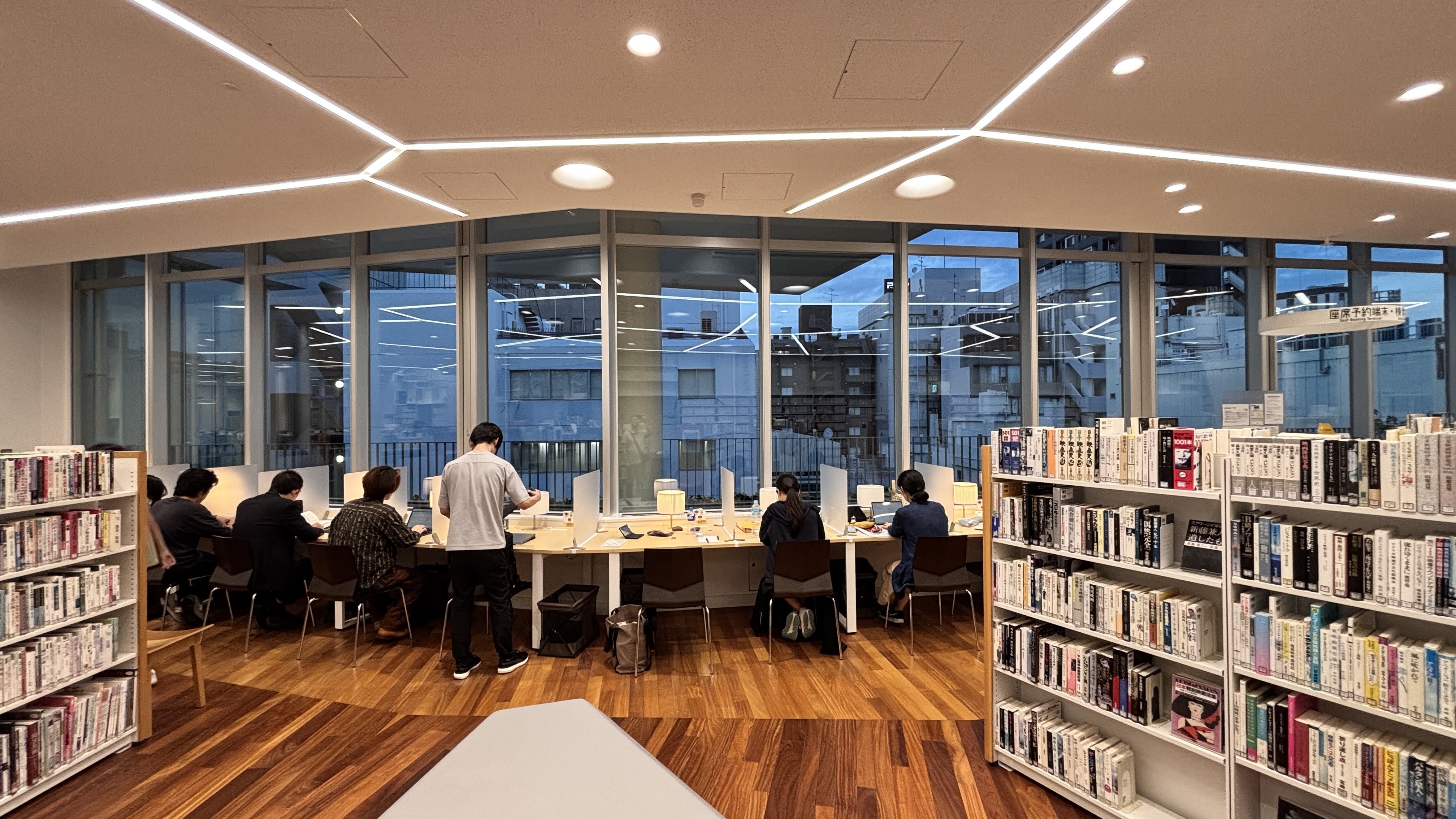 혼노모리(本の森)는 책의 숲이라는 뜻이라고 한다. 本(hon)은 책을 뜻하고, 森(mori)는 숲. 책이 숲처럼 빽빽하게 서 있는 도서관을 상징한다. 자연을 테마로 한 멋진 도서관으로, 이 건물은 2023년 Good Design Awards 수상작이다. 마침 숙소 근처에 있어서 퇴근(?)길에 들러보았다.