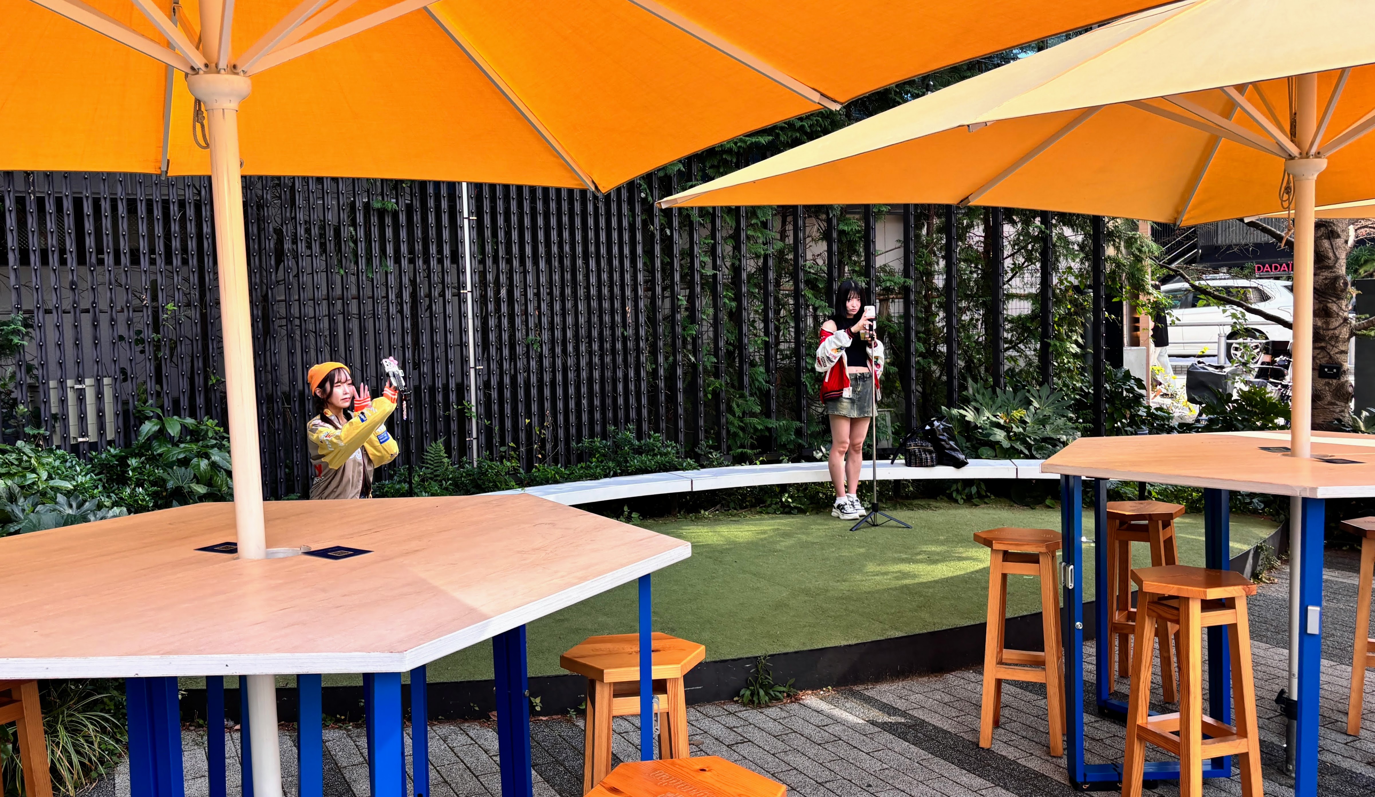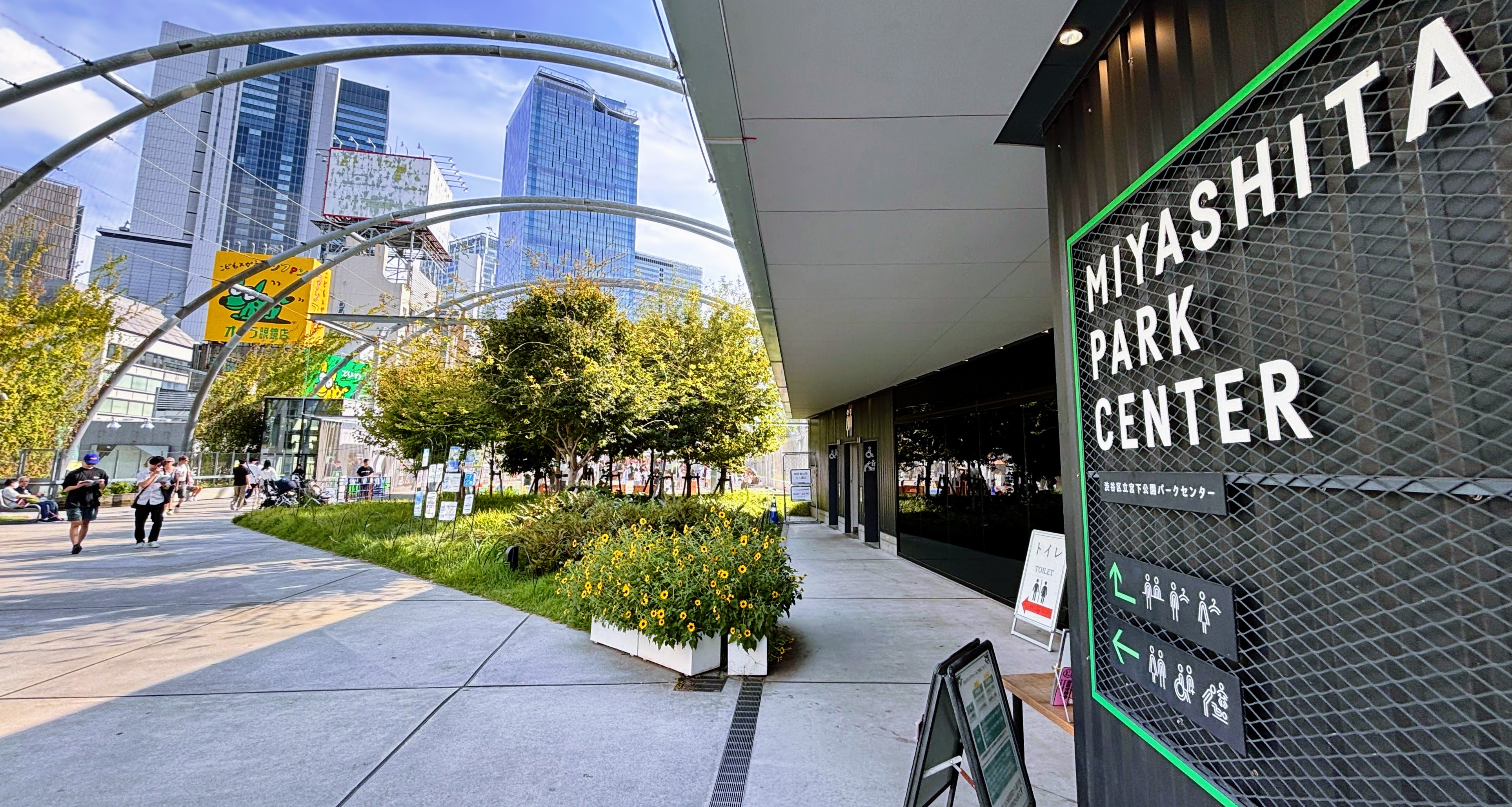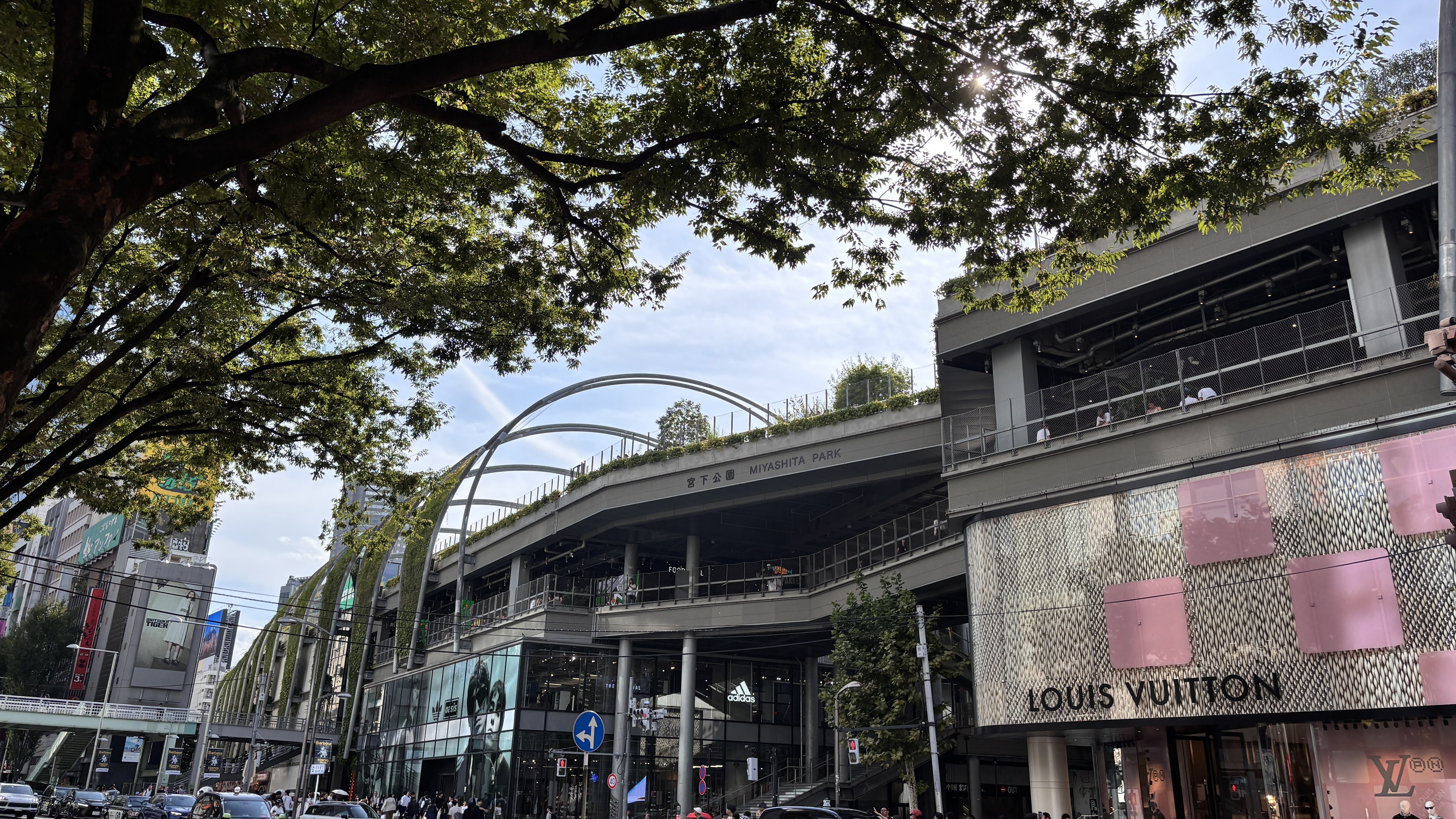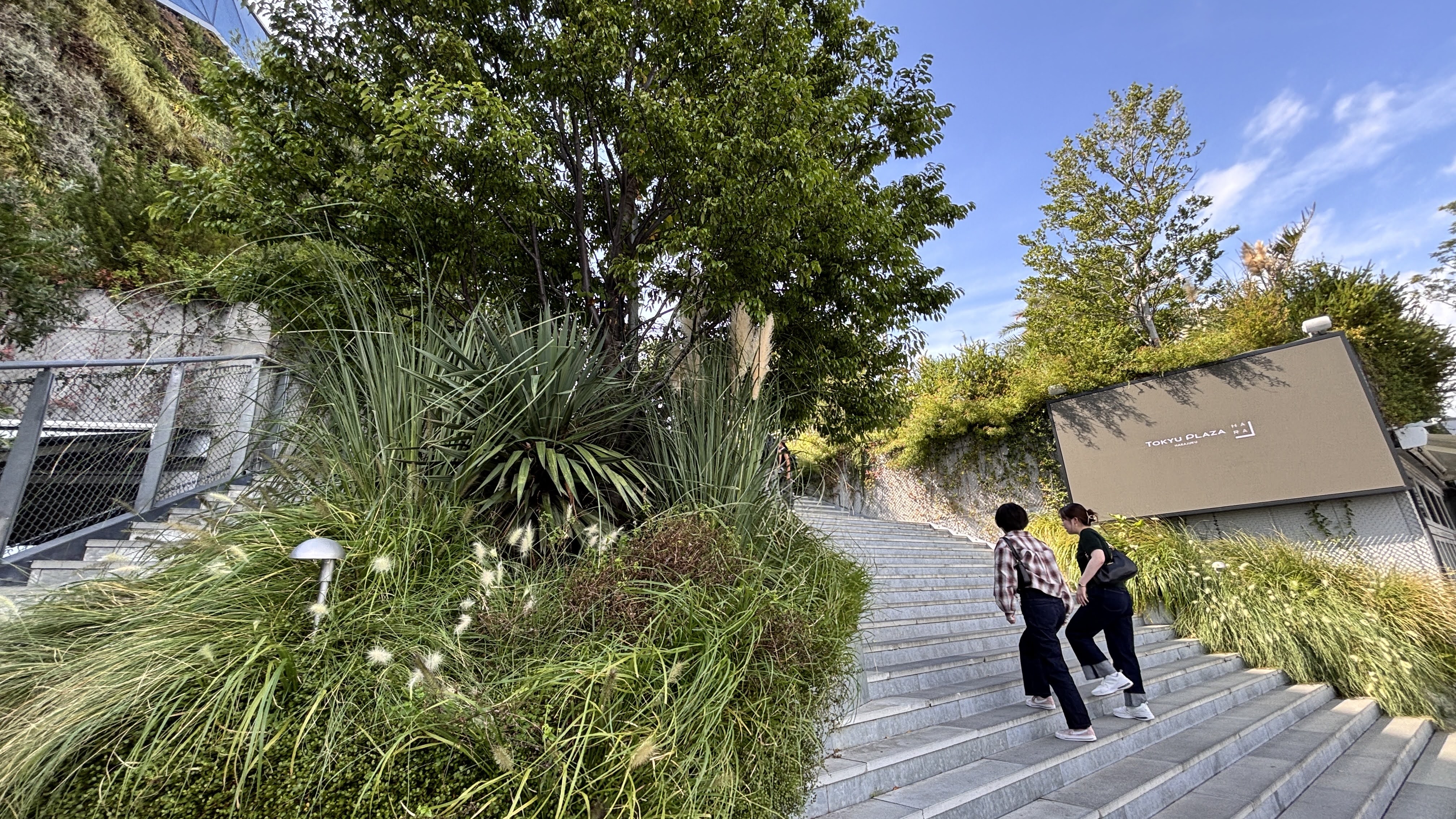 SHIBUYA CAST.라는 주상복합빌딩 앞 광장에서 유튜브인지 틱톡인지 아무튼 라이브 방송을 하고 계신 분들.그리고 이곳은 유명한 옥상 정원을 갖춘 또 다른 빌딩. 정원 이름은 Miyashita Park이다. 에스컬레이터와 계단으로 4층까지 올라간다.옥상이다.