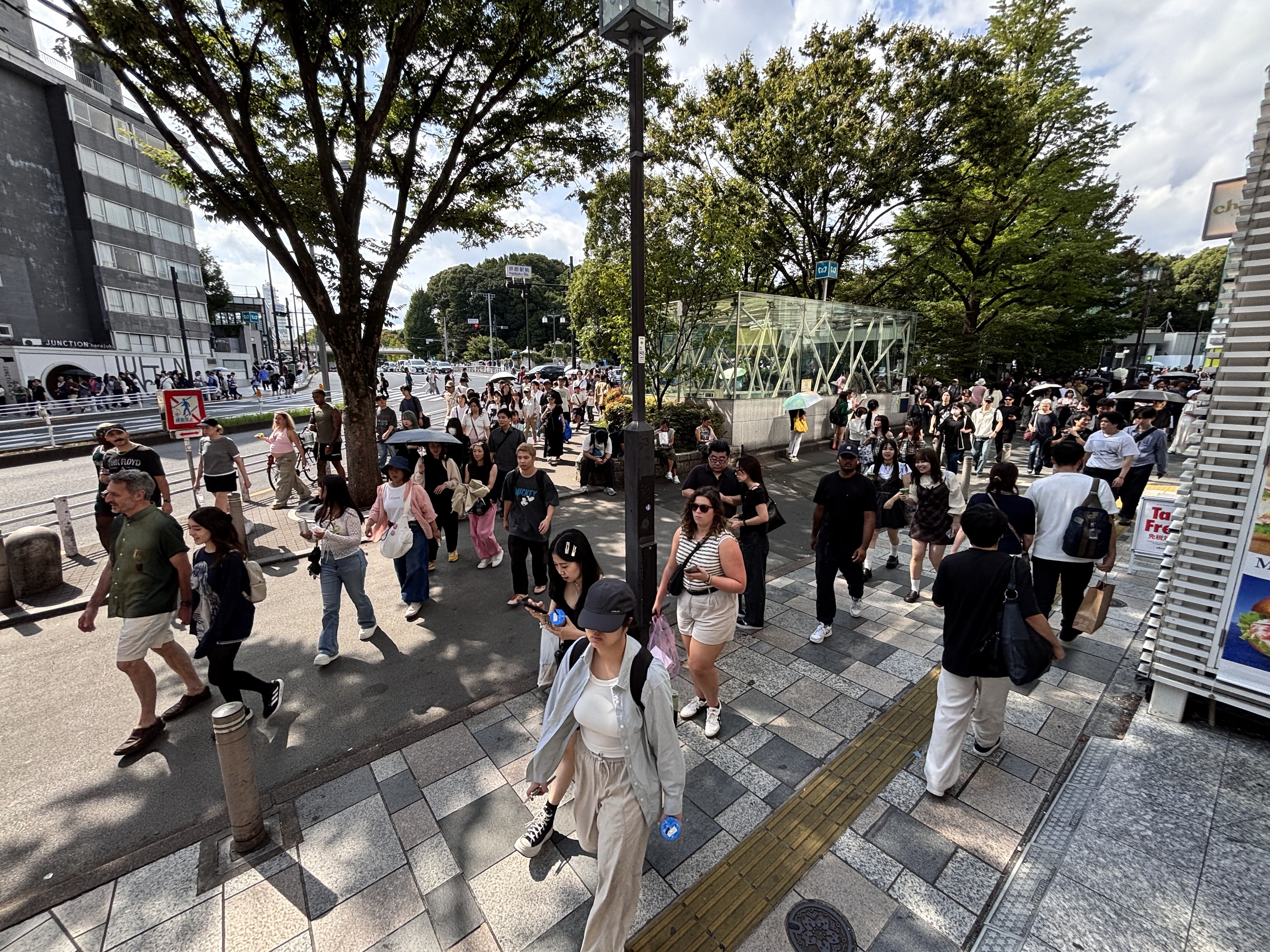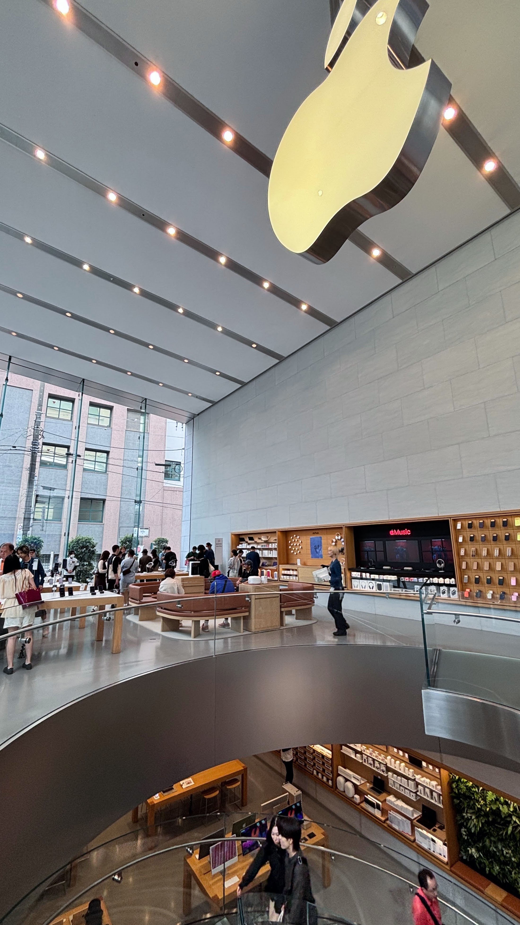 한참을 살펴보다 나왔다. 아이패드+키보드 조합을 요즘 보고는 있는데, 아직 나는 맥북에어가 더 좋게 느껴진다.이곳에도 요즘 유행인 '힐스'가 있다. 이른 아침인데 벌써부터 오모테산도 힐스(Omotesando Hills) 앞에는 오픈런 줄이 서있다. 경비 아저씨가 손목시계로 초를 재다가 정확히 정시가 되는 즉시 인사하고 문을 열어준다. 1초의 오차도 없다. 한 5분 전부터 지켜보고 있었는데 이런 상황이 왠지 웃겼다. ㅋㅋㅋ대체 뭐가 있길래... 하며 들어가보니 참 독특한 구조의 건물이다. 사람들은 대부분 식당으로 직행했다. 아점을 먹으러 가는 모양... (아점=브런치)좀 더 가면, 독특한 건축양식의 상가건물(Tokyu Plaza) 두 개가 세트로, 대각선으로 마주보고 있는 사거리가 나온다. 옥상 정원으로 유명하다. 두 건물 모두 들어가봤다.