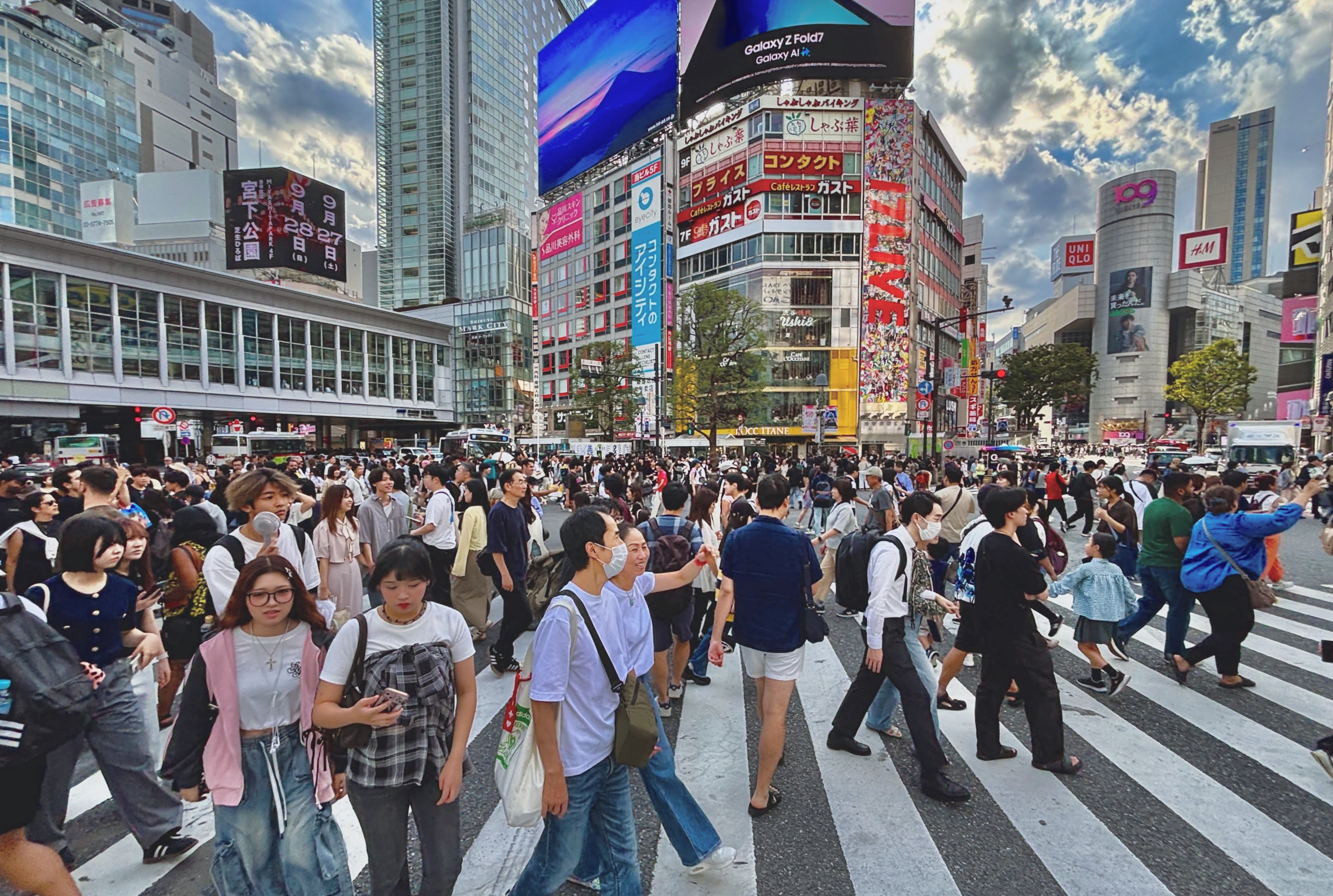 영화나 뉴스에서 참 많이도 봤던 시부야 사거리. 이곳을 멋지게 촬영하려고 노력하는 사람들이 많다. 그래서 옥상을 유료로 개방하는 빌딩들이 있다.나는 뭐 그렇게까지 노력하고 싶진 않아서 신주쿠 지하철역 3층 창문에 붙어서 기념사진을 찍었다. 파란불 신호가 떨어지면 여러 방향에서 우루루 사람들이 쏟아지듯 나왔다가, 다시 또 순식간에 사라지는 모습이 은근히 재미있다.