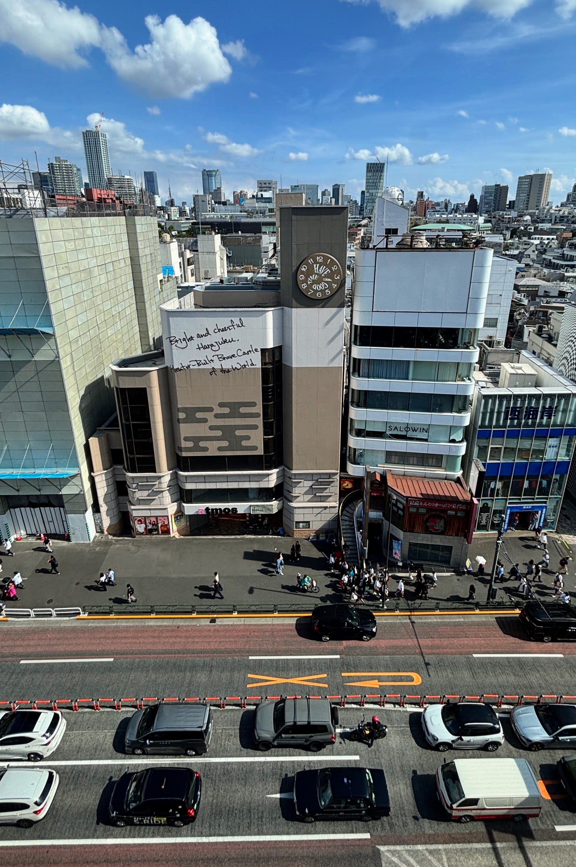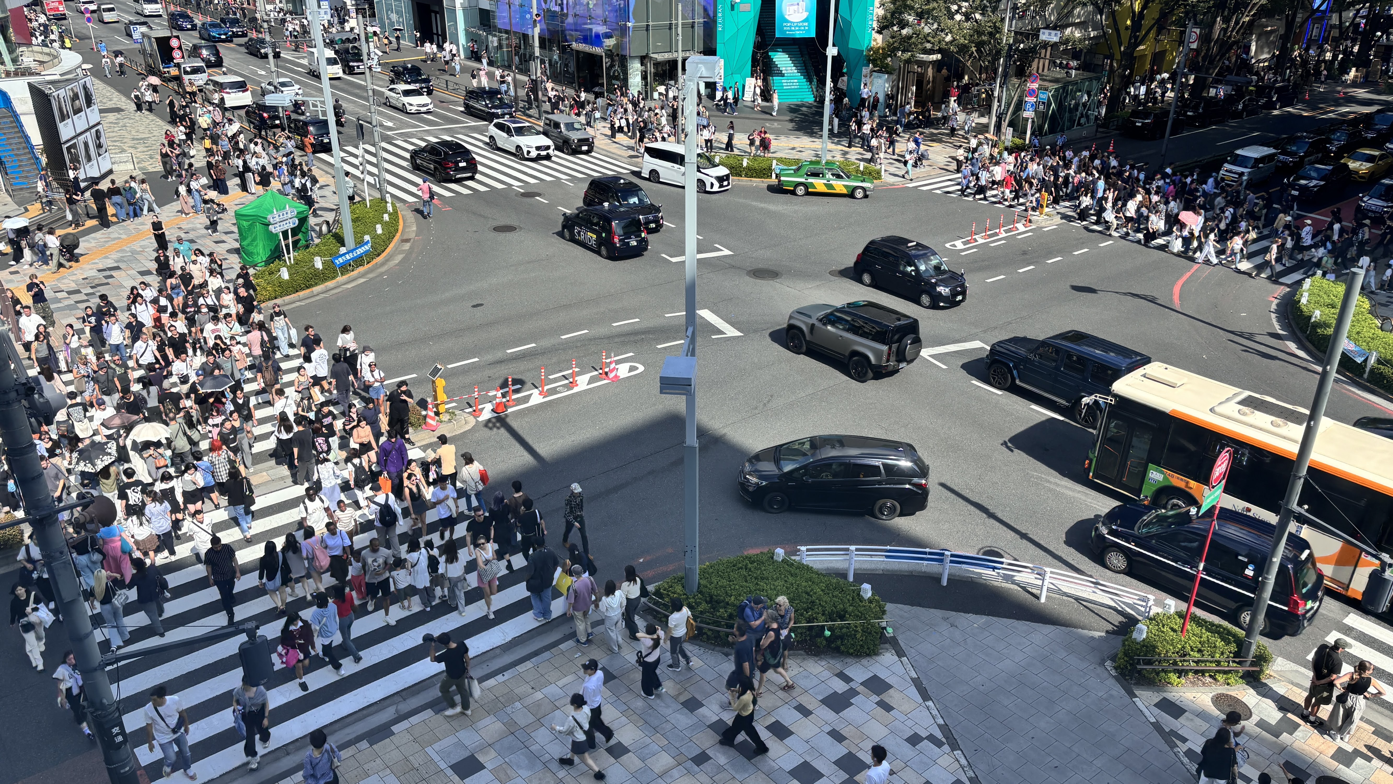 아까 맨 처음 봤던, 사거리에서 대각선으로 마주보고 있는 Tokyu Plaza 건물, 그 반대편 건물로 올라가본다. Tokyu Plaza Harajuku"HARAKADO".사거리가 잘 보인다. 그 유명한 시부야 사거리와 비교할 수는 없지만, 여기도 하염없이 사람 구경하기 좋을 듯하다.