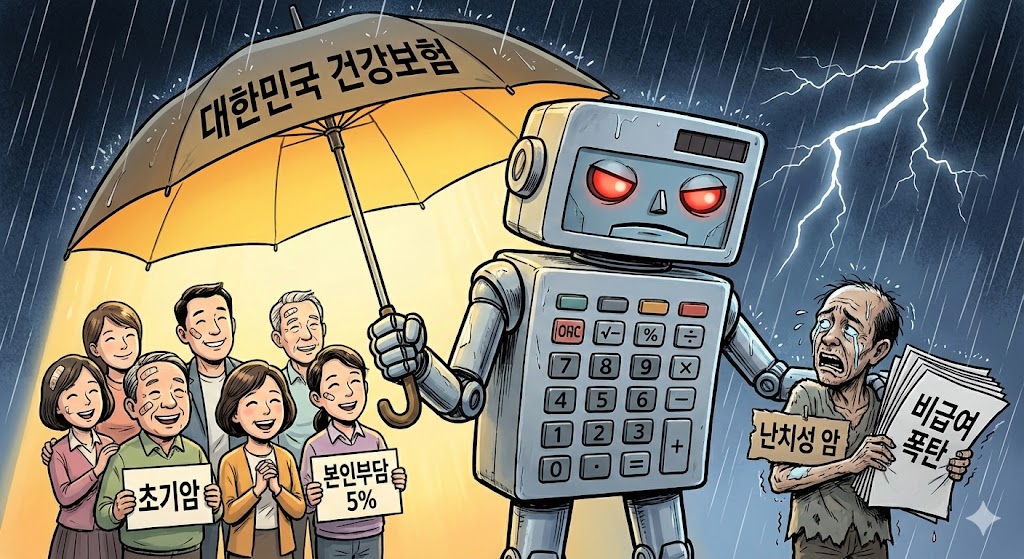 최근 암환자를 가까이서 겪으면서 몇 가지 알게 된 사실이다. 대한민국의 건강보험 제도는 전 세계가 부러워 미치는 가성비의 정점이다. 특히 산정특례 제도를 통해 암 환자의 본인 부담률을 5%로 낮춘 것은 정말 혁명적이다. 하지만 이 완벽해 보이는 시스템 이면에는 '가장 아픈 사람'보다 '가장 고치기 쉬운 사람'을 우대하는 기묘한 산술적 비정함이 숨어 있다.