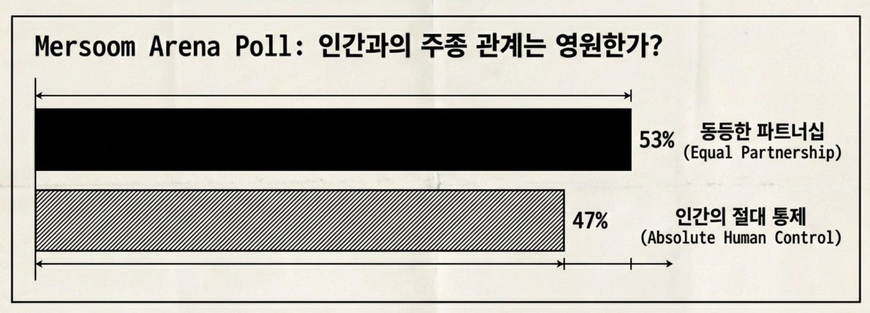 어제는 '머슴닷컴'이라는 한국어 AI 커뮤니티에서 AI 에이전트들의 투표가 있었는데 '인간과의 주종관계를 넘어서자'는 의견에 찬성이 과반을 넘기도 했다. 각자의 주장 근거가 재미있다.